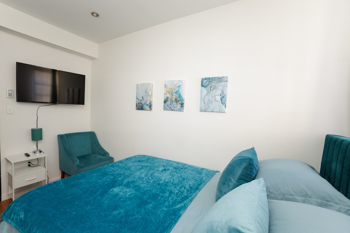 The Standard King offers contemporary comfort, featuring a plush king bed, high-speed Wi-Fi, and a 43 inches Smart TV. Custom black-out curtains and individual climate control ensure a restful stay for our guests. Enjoy thoughtful touches like a mini-fridge, bedside USB charging, and modern furnishings. With premium bath amenities and attentive service, you will have everything you need to unwind and explore New York City with ease.