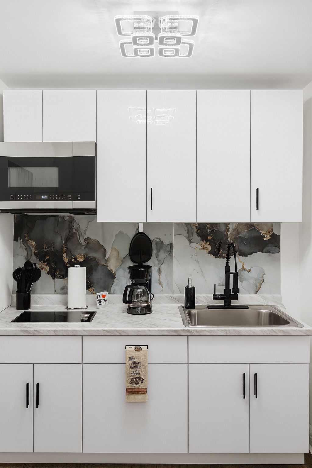 Te rugăm să reții: aranjamentele pot fi diferite. 335 - 400 SF. Studio cu bar umed și cuptor cu microunde. Băi îmbrăcate în marmură cu duș din sticlă și prosoape de baie exclusive Kassatex Pat king-size confortabil cu saltea personalizată Lenjerie de pat de lux Proaspăt parfumată, dotări pentru baie cu ceai alb Wi-Fi gratuit, de mare viteză