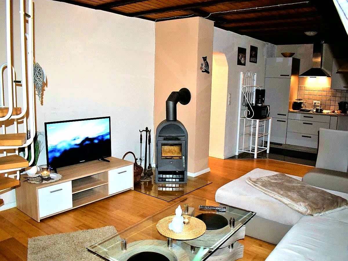 Apartament la mansardă fantastic (130 mp), în inima Eifelului vulcanic, în Mehren/Daun. Locație ideală pentru drumeți/bicicliști pentru a descoperi Maare și Eifelsteig, o oază de relaxare. Zona de living-sufragerie spațioasă duce la conservatorul magnific cu șemineu și la terasa cu mobilier de grădină confortabil. Vedere asupra locului și văii. Kit complet echipat. Ambele dormitoare cu paturi duble (160 cm). De la dormitorul mai mare acces la terasă. Parcare chiar lângă casă. Copiii sunt bineveniți.