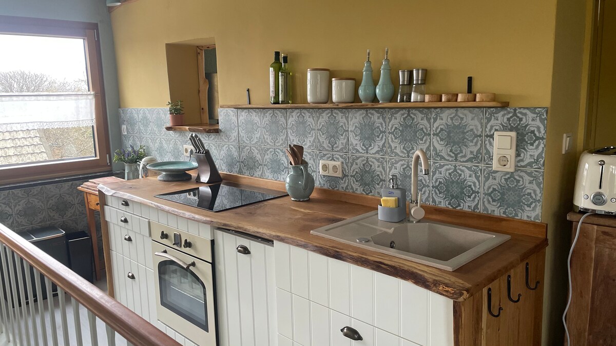 Această locuință are propriul stil. Ca parte a activității mele de designer de interior, acest apartament a fost creat. Poți cumpăra, comanda sau face aproape orice acolo. Motto-ul nostru este upcycling și individualitate. Nimic de pe raft și nicio tendință. Dar longevitatea și o notă personală. Astfel încât să te poți răsfăța cu o pauză și o inspirație de aproximativ 96 de metri pătrați. Indiferent dacă dorești să faci drumeții sau doar să te relaxezi.