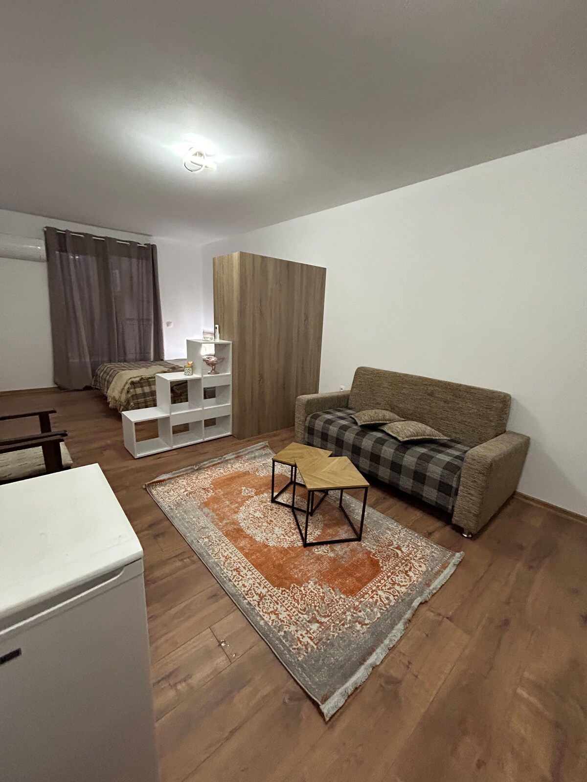 Zona de living este concepută cu gândul la confortul tău, oferind scaune confortabile și o atmosferă plăcută pentru relaxare. Dormitorul nostru este confortabil și echipat cu tot ce ai nevoie pentru un somn liniștit. Baia este modernă și elegantă, cu toate facilitățile necesare Situat la 700 m de centrul orașului într-un cartier plin de viață, veți avea acces convenabil la atracțiile locale, piețe pline de viață și opțiuni de luat masa gustoase. Cufundă-te în farmecul orașului nostru, rezervându-ți șederea la noi astăzi!