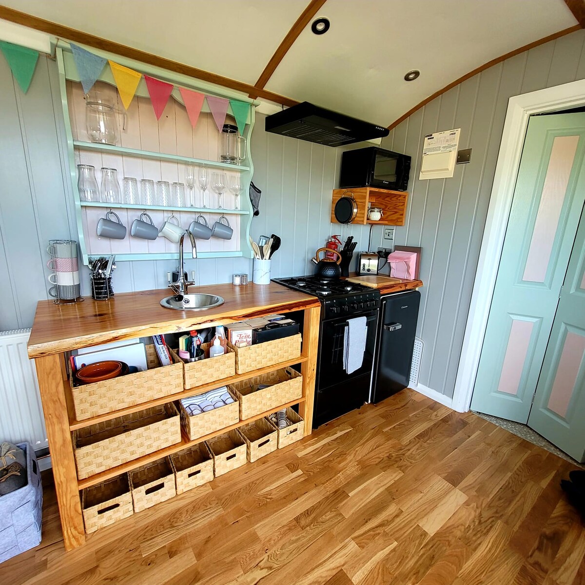 The Hut on the Hill is a luxury Shepherds Hut; but it is so much more than just a hut. Fully centrally heated, with King size bed, extensive outside area, kitchen with gas cooker, microwave and fridge. The panoramic views are outstanding from all aspects of the hut. In addition, the adjacent stable, also centrally heated, consists of a utility area, with space to dry wet kit, wet pets and safe place for bikes, canoes etc.