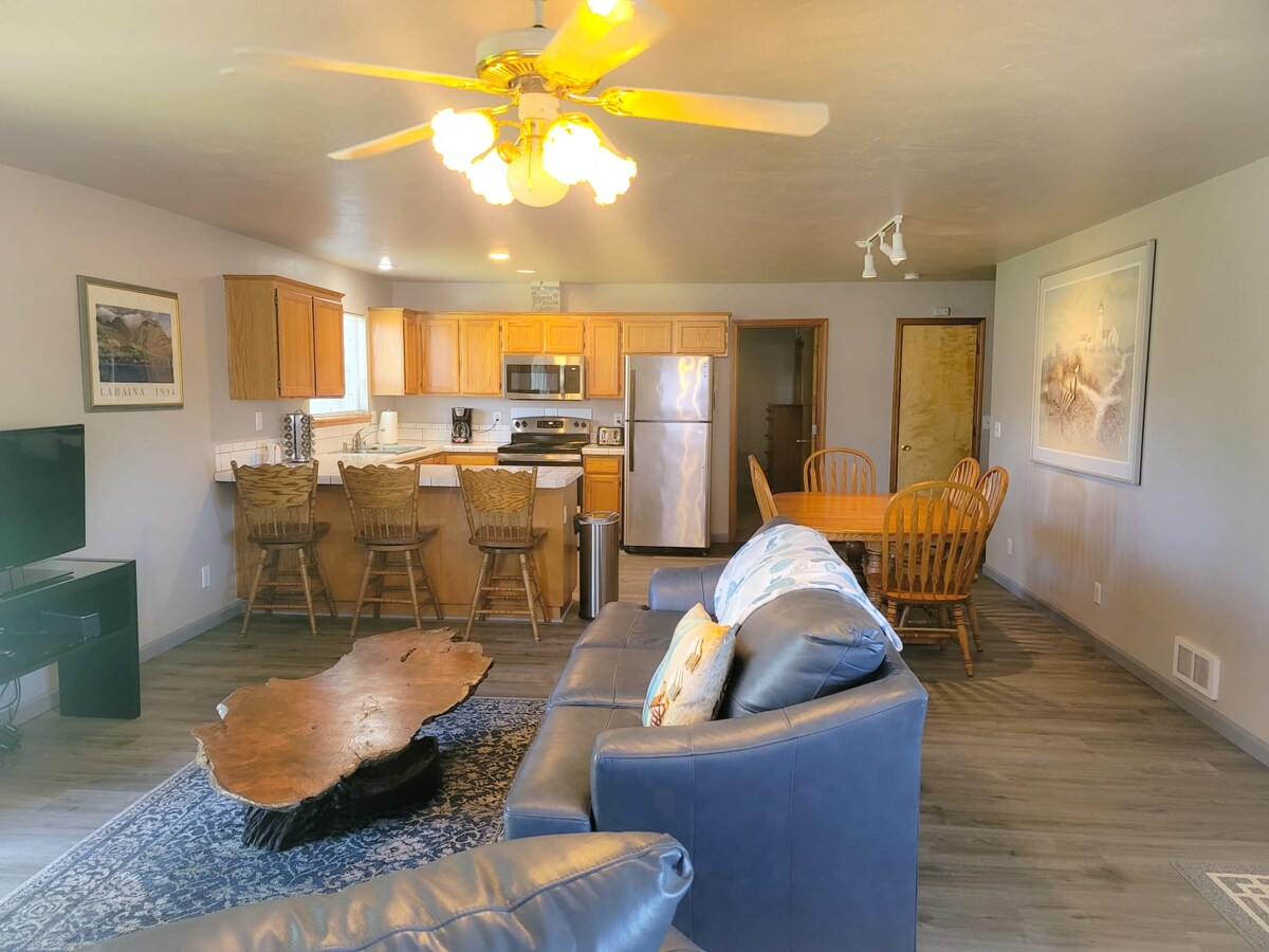 Familia ta va fi aproape de tot atunci când vei sta în această locuință situată central. Această proprietate are un pat matrimonial și o canapea extensibilă și este situată convenabil aproape de Centrul pentru vizitatori din pădurea Redwood Nat'l, la doar 1 stradă de plajă, ceea ce face ușor să te bucuri de o zi în pădure sau lângă ocean. Suntem, de asemenea, la numai 1/2 milă de far și la câteva străzi de acvariu, ambele fiind atracții populare în zonă. Căutăm și mai multă aventură, caiac pe râul Smith!
