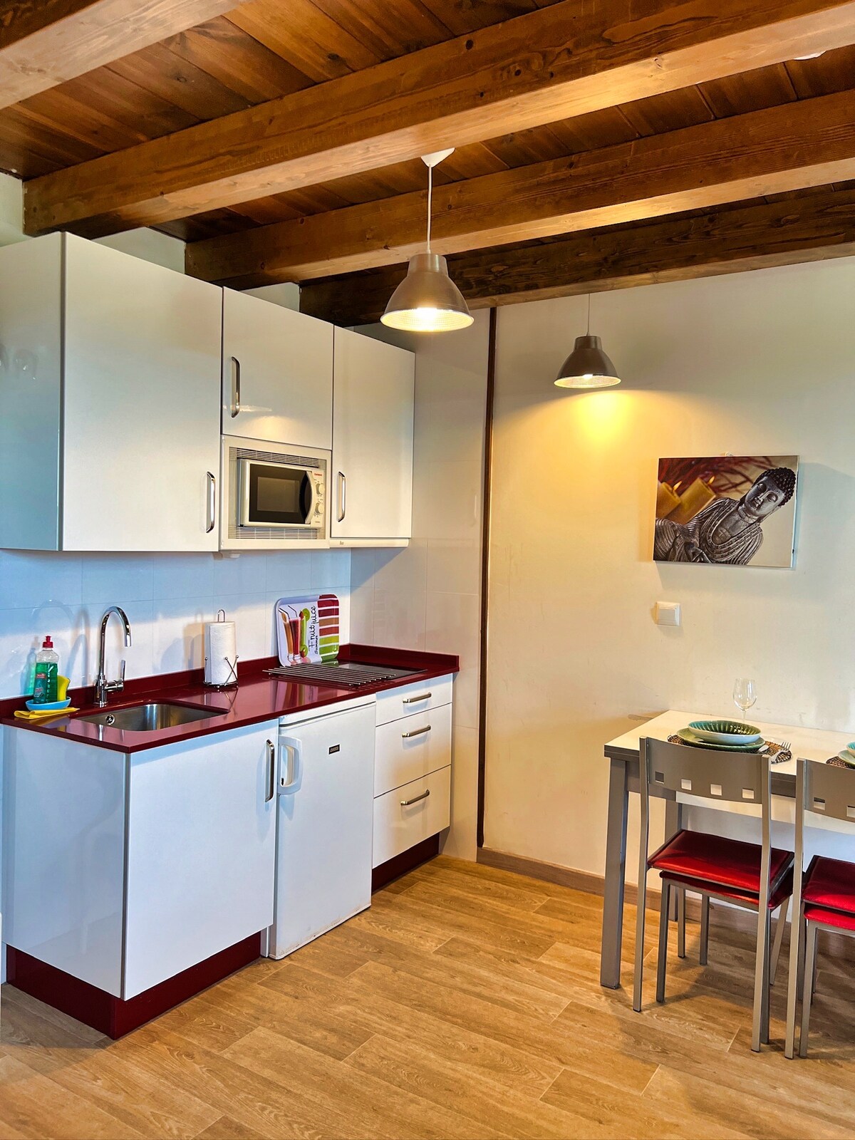 STUDIO COMPLET RENOVAT într-un mic complex rural la poalele PICOS DE EUROPA, LA FRAGUA Rural Housing. Studio romantic în perfectă armonie între design funcțional și confort. Bucură-te de căldura apusului de pe terasă, cu vedere frumoasă la Picos de Europa. Dotat cu lenjerie de pat, prosoape, ustensile de bucătărie, mașină de spălat rufe, frigider, cafetieră, uscător, mobilier de terasă. ZONE COMUNE: SOLARIU – LOC DE JOACĂ – GRĂTAR – SNACK BARURI