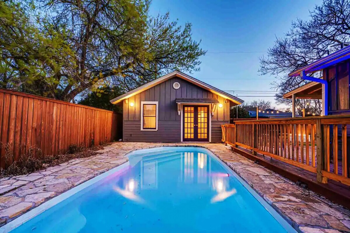 La Casita Stella, îți garantăm o ședere confortabilă și încântătoare. Proprietatea noastră este situată într-un cartier promițător, care oferă confortul cumpărăturilor, cafenelelor și restaurantelor din apropiere, la mică distanță de mers cu mașina. Poți sări cu ușurință la AT&T Center, Alamodome, River Walk și centrul orașului San Antonio fără bătăi de cap. Bucură-te de o escapadă de lux în San Antonio, cu o piscină privată cu 3 dormitoare, 2,5 băi, scaune în aer liber sub o pergolă și un home theater de top.