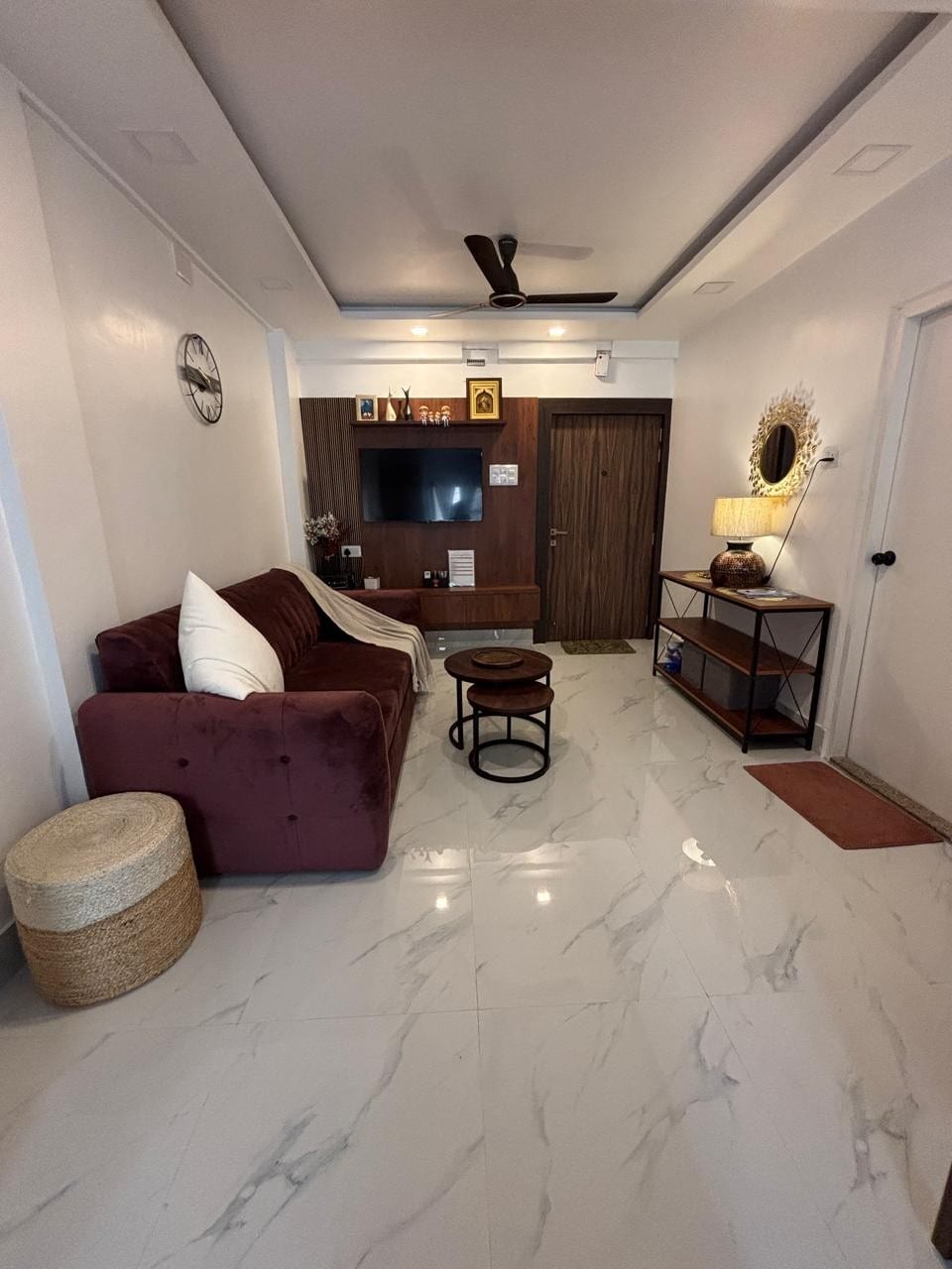 Un studio privat confortabil complet mobilat, cu 1 bhk, cu toate facilitățile unei locuințe, departe de casă. Bucătăria este dotată cu un purificator de apă, un aragaz cu inducție și un cuptor cu microunde cu coș automat, un gheizer pentru apă caldă și un aparat de aer condiționat de 1,5 tone, cu un pat de nivel scăzut pentru un somn liniștit pe timp de noapte. Sala are o canapea extensibilă Diwan și un televizor inteligent de 44 inch pentru divertisment, cu un Wi-Fi de 100 Mbps pentru munca ta de acasă. Uită de grijile tale în acest spațiu spațios și liniștit.