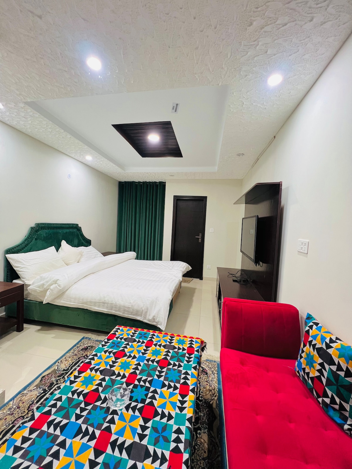 Step into refined comfort. Our Boutique Luxe Suite blends soft aesthetics, warm lighting, and timeless design — all at Kashmir Point, right on Main Bank Road. Enjoy 24/7 housekeeping, secure parking, a rooftop live BBQ, and an intimate private cinema under the stars. With a restaurant on the top floor, every moment feels curated, cozy, and beautifully luxurious.