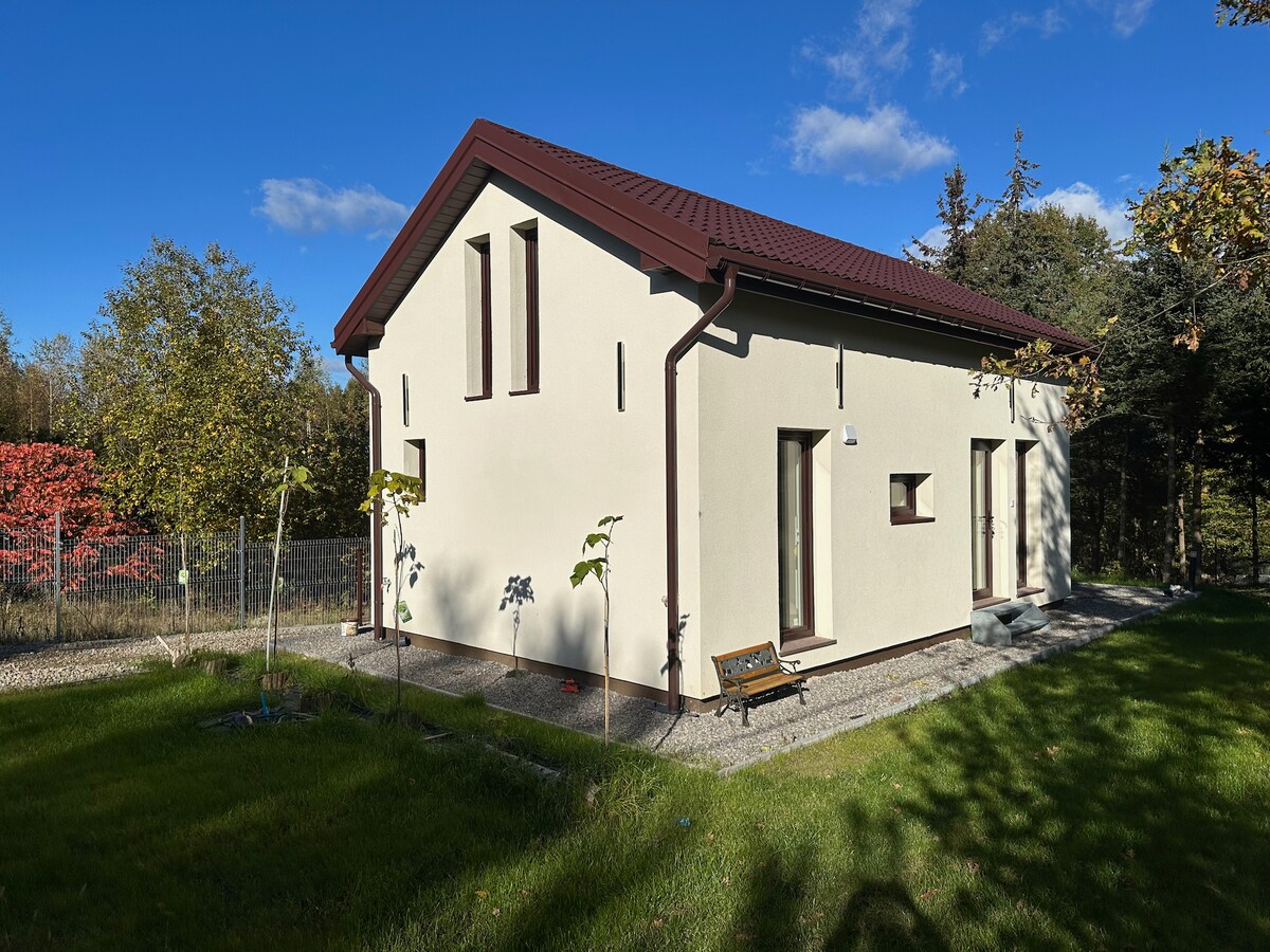 Casa pentru oaspeții noștri este situată în proprietatea proprietarilor. Lângă cabană se află o lagună. Casa este situată în zona Parcului Peisaj Nadbużański. Cabana are o zonă de dormit deschisă pentru până la 7 persoane la primul etaj. Bucătăria complet utilată, sala de mese și baia sunt situate la parter. Există, de asemenea, un șemineu și două televizoare. Oaspeții pot utiliza, de asemenea, terasa acoperită, grătarul, inelul de incendiu și zona piscinei. Alături este o bicicletă închiriată și un magazin.