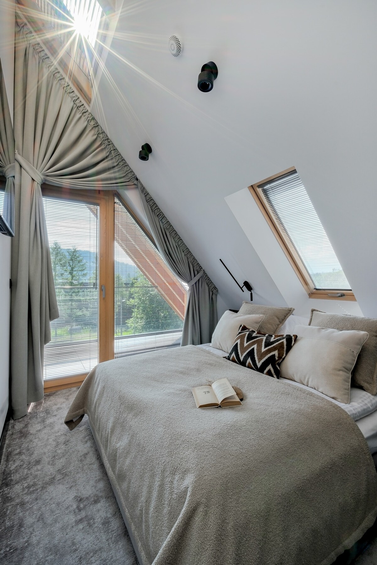 Wakacje w luksusowych warunkach? Oczywiście! Dwupoziomowy apartament z antresolą pełniącą funkcję sypialni spełni te wymagania. Usytuowany na pierwszym piętrze Tater Chaty, posiada osobną łazienkę z podgrzewaną podłogą i w pełni wyposażony aneks.