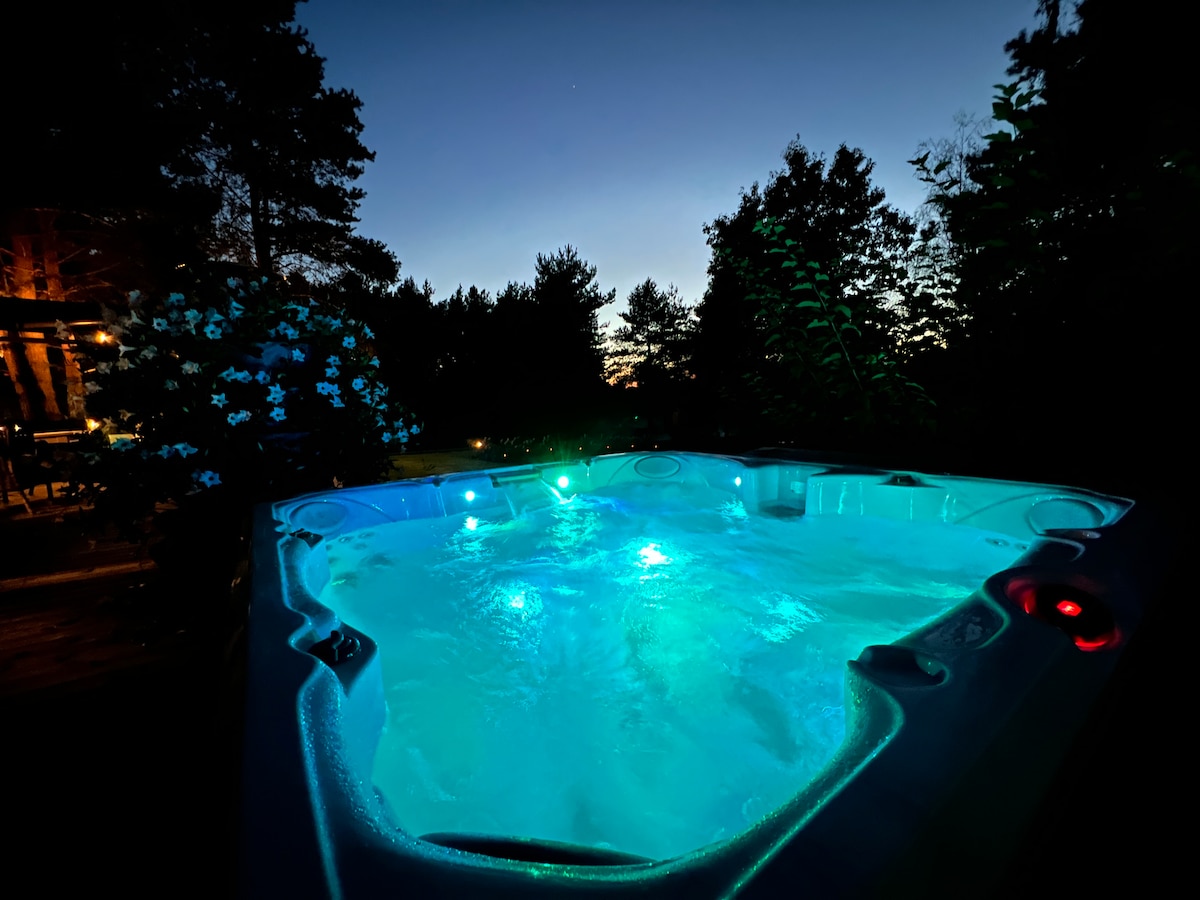 Interioare moderne și spațioase la marginea pădurii, înconjurate de natură. Dacă dorești să petreci timp într-o atmosferă calmă și relaxantă (vizionând un film pe un proiector sau făcând o baie relaxantă cu vedere la natură), acesta este locul perfect pentru tine. Trei dormitoare duble; un living spațios cu un colț extensibil; o bucătărie complet utilată; două băi, o curte pavată și o cadă cu hidromasaj în aer liber pentru utilizare în timpul verii. Fără petreceri zgomotoase. Nu acceptăm grupuri de bărbați singuri.