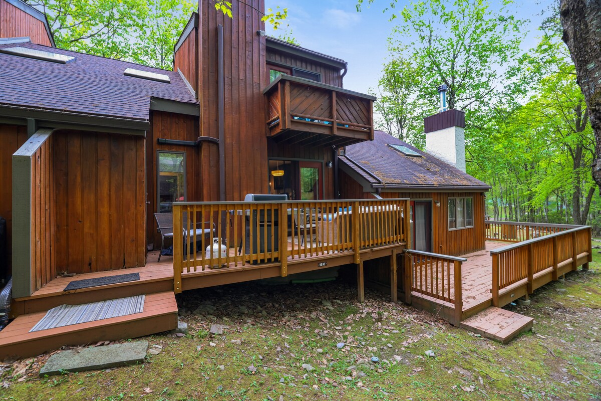 Come and relax at Vista View- a unique, 1970 contemporary cabin in the heart of Lake Harmony! The raised home and large wrap around deck will feel like you're staying in a treehouse. Enjoy the private hot tub with woodland views, the outdoor firepit, access to Lake Harmony & LH Beach, and much more! Central to the Poconos, Lake Harmony seated between Boulder View and Jack Frost Mountain with "Restaurant Row" & Split Rock Water Park right around the corner. HIGH SPEED INTERNET & Netflix provided