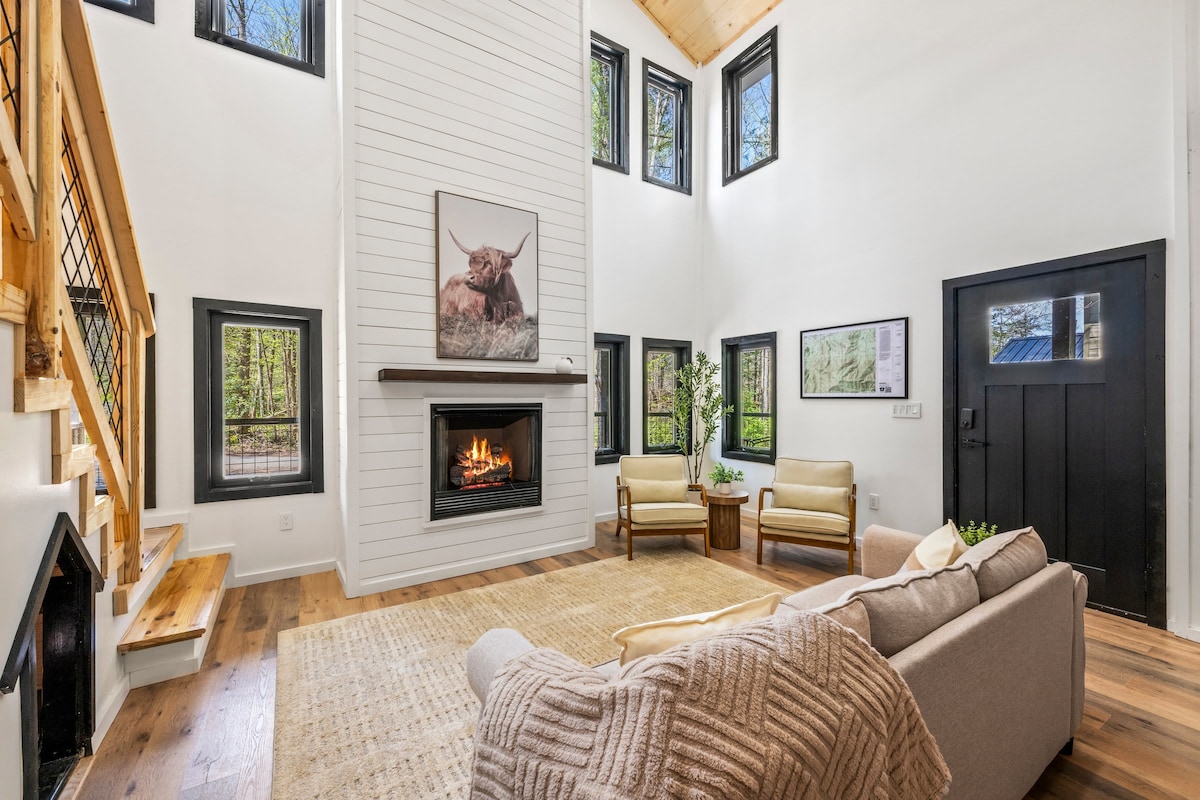 Situat la doar 3 mile de centrul orașului Gatlinburg. Această cabană renovată, superbă, cu 2 dormitoare, poate găzdui până la 6 persoane. 2 dormitoare complete cu paturi matrimoniale și o canapea extensibilă. Noile televizoare inteligente, decorul lemnos modern și un șemineu pe gaz fac din această cabană confortabilă escapada perfectă pentru un weekend de explorare a Munților Smoky și bucurându-te de distracție și jocuri în Pigeon Forge. Cea mai privată cabană de pe stradă, această închiriere este înconjurată de natură.