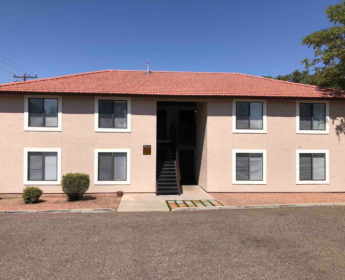 Acest apartament de 1000 de metri pătrați se află la etajul superior al unei clădiri de două etaje, într-un cartier rezidențial sigur și liniștit. Trebuie să urci scările pentru a intra. Spațiul are două dormitoare cu paturi matrimoniale, o baie completă, plus mașină de spălat și uscător în unitate. Oaspeții se bucură de o ședere sigură și curată, aproape de toate cele mai bune părți ale orașului Page. Nu este potrivită pentru copii. Familiile cu copii trebuie să rezerve una dintre unitățile noastre de la etajele inferioare. Parcarea este inclusă și foarte aproape de clădire.