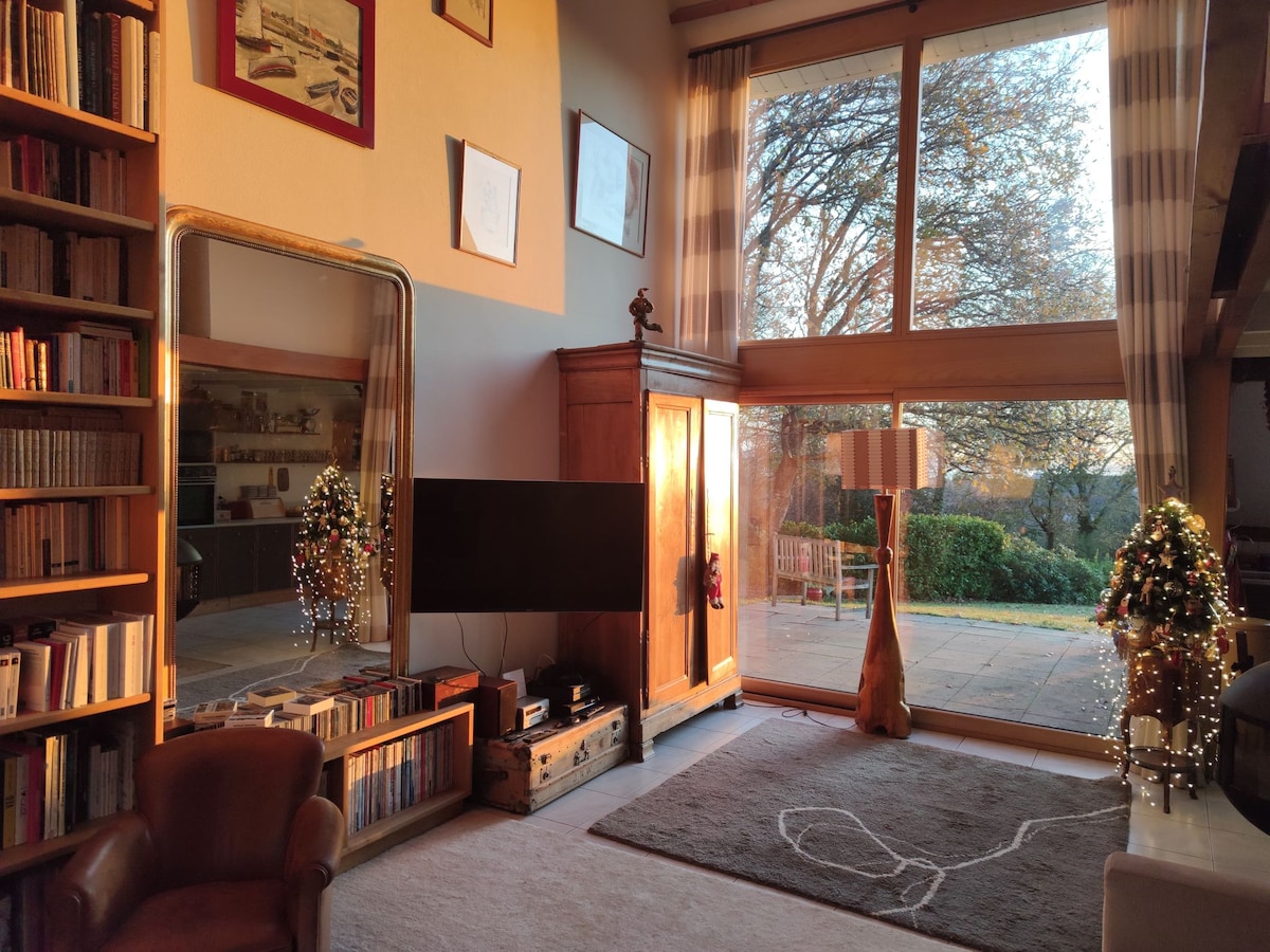 Casă plăcută din anii 1930, situată la 6 minute de mers pe jos de plaja cu nisip alb, GR 34, thalasso, la 10 minute de centrul orașului Treboul, de portul său de agrement și de facilitățile sale. O să-ți placă locuința mea pentru confortul și decorul îngrijit. O terasă îți va îmbunătăți șederea. Ai o baie privată în dormitor. Toaleta privată este pe palierul de lângă spațiul tău. Va fi servit un mic dejun consistent (inclus).