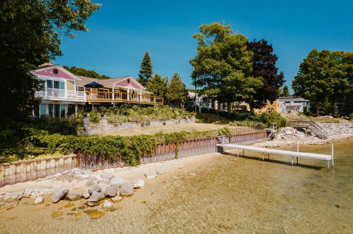 Modern inspired cabin situated along M22 between Traverse City and Suttons Bay. This custom-built home offers sunrise views over West Harbor Bay and private beach access across the street. Minutes from the best wineries and restaurants the north has to offer. The bright interior and vaulted ceilings create a warm space to gather. The cabin sleeps 6-8 and offers unique built in beds and outdoor shower for a rinse after a long day at the beach.
