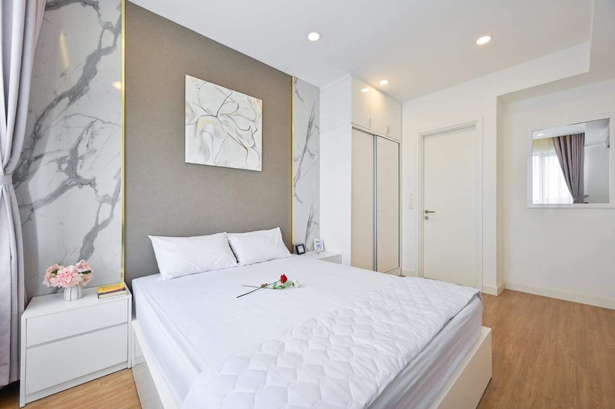 +Apartament în clădirea Landmark2, lângă Landmark81. +Acesta este Officetel (Office+Hotel). Apartamentul permite accesul prin Airbnb. +Dormitorul are saltea Luxury Memory-Foam, King Size-1m8x2m, perfectă și confortabilă, bună pentru probleme cu durerile de spate. +Există mașină de spălat și uscător +Igiena, curățenia sunt prioritatea mea principală. Lenjeria de pat și prosoapele sunt întotdeauna reînnoite la sosire +Există servicii de curățenie gratuite pentru șederi de lungă durată