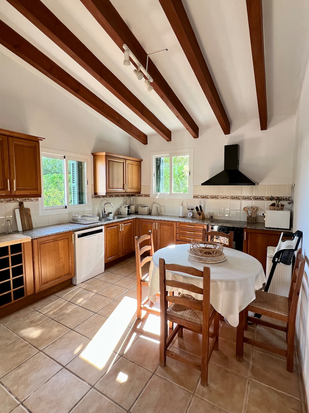Vilă frumoasă pe malul mării, perfect situată în sat. Locație liniștită. Amplasată între faimosul sat alb Binibeca Vell (400 m) și plaja Binibeca (700 m). Platforme de scăldat în mare în fața vilei (150 m). Bucătărie nouă! cu dulapuri din lemn și electrocasnice moderne (recent renovată pentru sezonul 2024). AC nou și silențios (instalat în 2022). Piscină mare însorită, una dintre cele mai mari din întreaga zonă Binibeca (9 m lungime, 39 mp, cu o parte puțin adâncă pentru cei mici să se joace). Piscina nu este împrejmuită. SmartTV