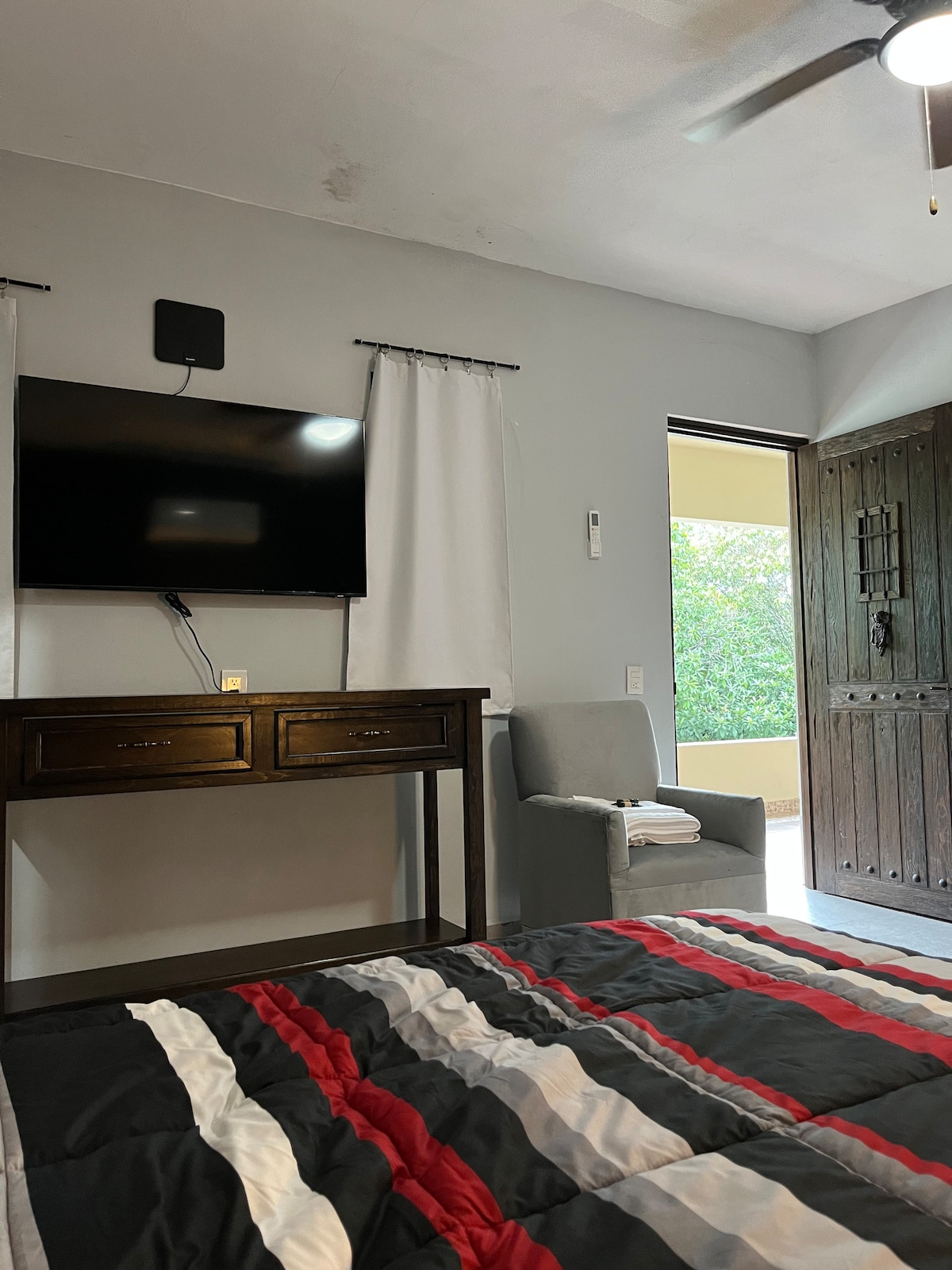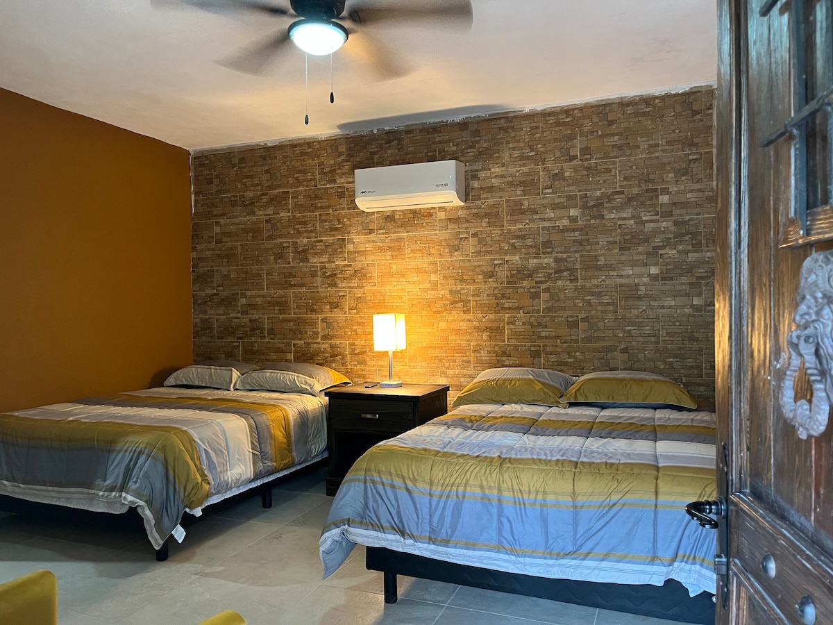 Bine ai venit în casa noastră confortabilă, într-o comunitate închisă, situată la doar 4 minute de Universitatea din Montemorelos. Indiferent dacă vii pentru muncă, studiu sau vacanță, avem tot ce ai nevoie pentru a te simți ca acasă departe de casă. Când ajungi la apartament, poți intra cu codul personal. Locul are 3 unități de aer condiționat pentru confortul tău. În living te poți bucura de un televizor inteligent de 50"cu Netflix gratuit, precum și de internet de mare viteză. Terasa are un grătar, o masă și scaune