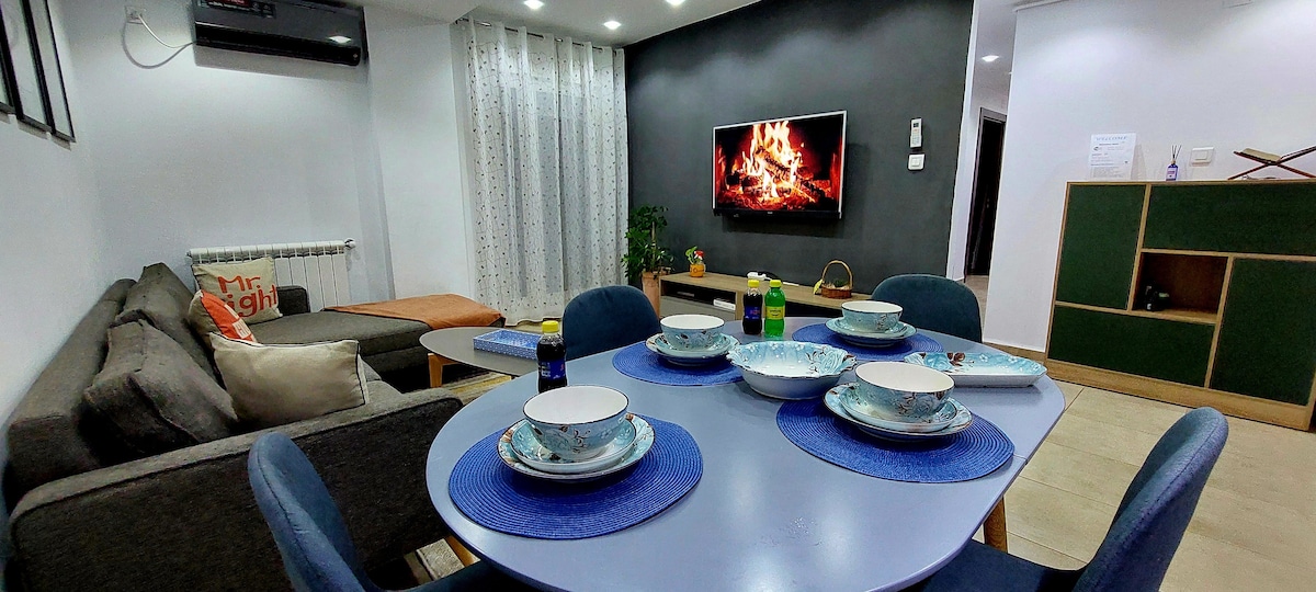 Bright two-bedroom apartment in Akid Lotfi with a balcony and sea view, ideal for couples, families, and business travelers. The apartment features two comfortable bedrooms, a modern living room, fast Wi-Fi, air conditioning, a fully equipped kitchen, and self check-in. Located in a quiet residence with free parking. Close to cafes, restaurants, beaches, and shops. Perfect for a comfortable stay in Oran.