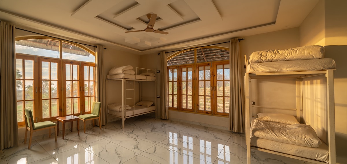 Capture the morning sun from the private balcony of your spacious room, which features a king-sized bed, a work desk, and an ensuite washroom. Far from city noise and tourist crowds, Zostel Homes Rajgundha in Barot Valley offers a serene mountain retreat where time slows down, views stretch far, and the vibe is always warm. Our dynamic common room seamlessly transitions from a focused work environment for digital nomads to a lively social hub for games and tales enthusiasts throughout the day.