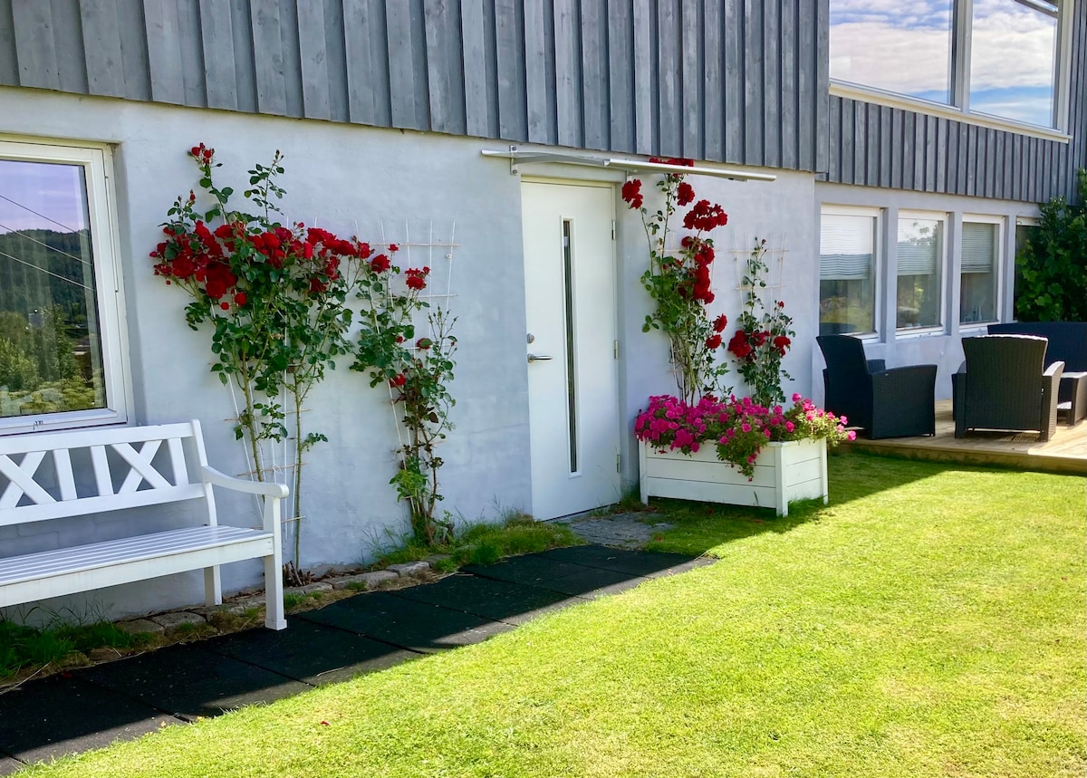 Vizitezi grădina zoologică Kristiansand, munca, peștele sau vacanța în Sørlandet? Apartament mare, rural, bine echipat, 2 dormitoare, 6 paturi. Parcare gratuită pentru mai multe mașini, încărcător electric. 20 de minute până la grădina zoologică, 10 minute până la Aeroportul Kjevik, 15 minute până la Hamresanden, cea mai lungă plajă cu nisip din Norvegia și 25 de minute până la Kristiansand cu legături de feribot și tren. Liniștit și liniștit, cu o curte pavată frumoasă și vedere la Tovdalselva. Locuri de înot și pescuit la câțiva pași