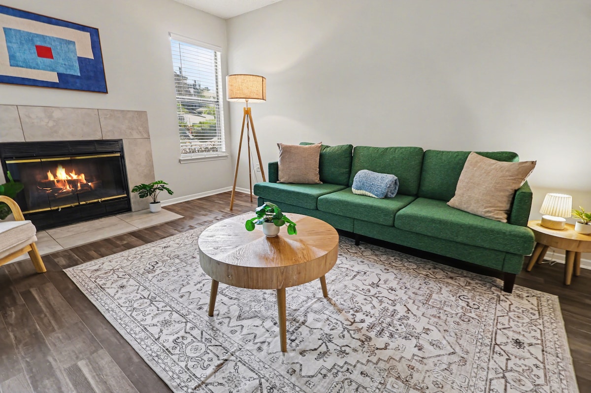 Enjoy modern comfort in this stylish 1BR/1BA apartment featuring two 60” flat-screen TVs, a plush king bed, and a luxurious glass shower. Stay refreshed with an in-unit washer/dryer and start your day at the complimentary coffee & tea bar. The kitchen island with barstools is perfect for dining or working. Designed for both relaxation and convenience, this space is the perfect getaway for any traveler.