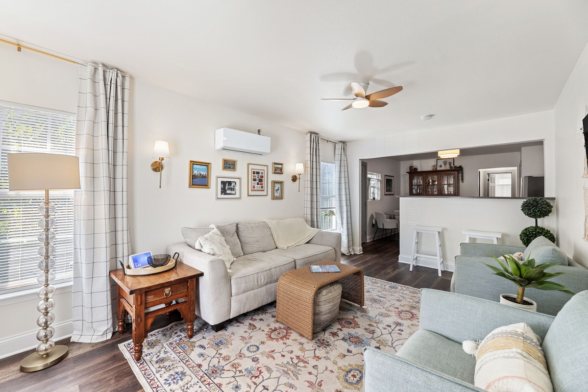 Situat în inima cartierului Bishop Arts din Dallas; la 2 minute de mers pe jos de viața de noapte diversă, arte stradale, magazine șic, restaurante, cafenele, muzică live și fabrici de bere. Aproape de toată activitatea, dar pe o stradă liniștită mărginită de copaci. Eleganță istorică cu tavane înalte, încorporate și înfășurare în jurul verandei. La doar câteva minute de centrul orașului Dallas, Medical District, Arts District și centrul orașului. 20 de minute până la stadionul ATT, parcul de mingi și Six Flags. ★„Casă frumoasă! Curată! Mi-a îndeplinit toate așteptările!”