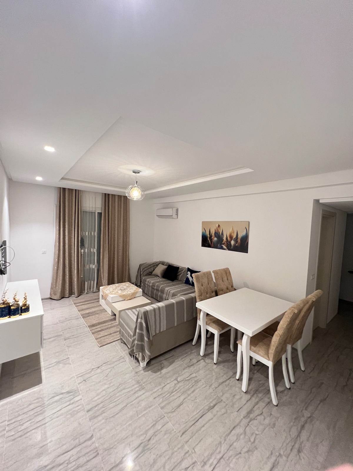 Situé dans un quartier récent, à proximité de toutes les commodités, cet appartement unique est un véritable hommage au savoir-faire des artisans locaux, qui ont tous contribué à sublimer cet espace. Dans une atmosphère chaleureuse et accueillante, vous aurez l’occasion de vivre pleinement l’authenticité et la richesse de la culture artistique tunisienne, incomparable en son genre. Chaque détail a été soigneusement pensé pour vous garantir une expérience de séjour inoubliable.