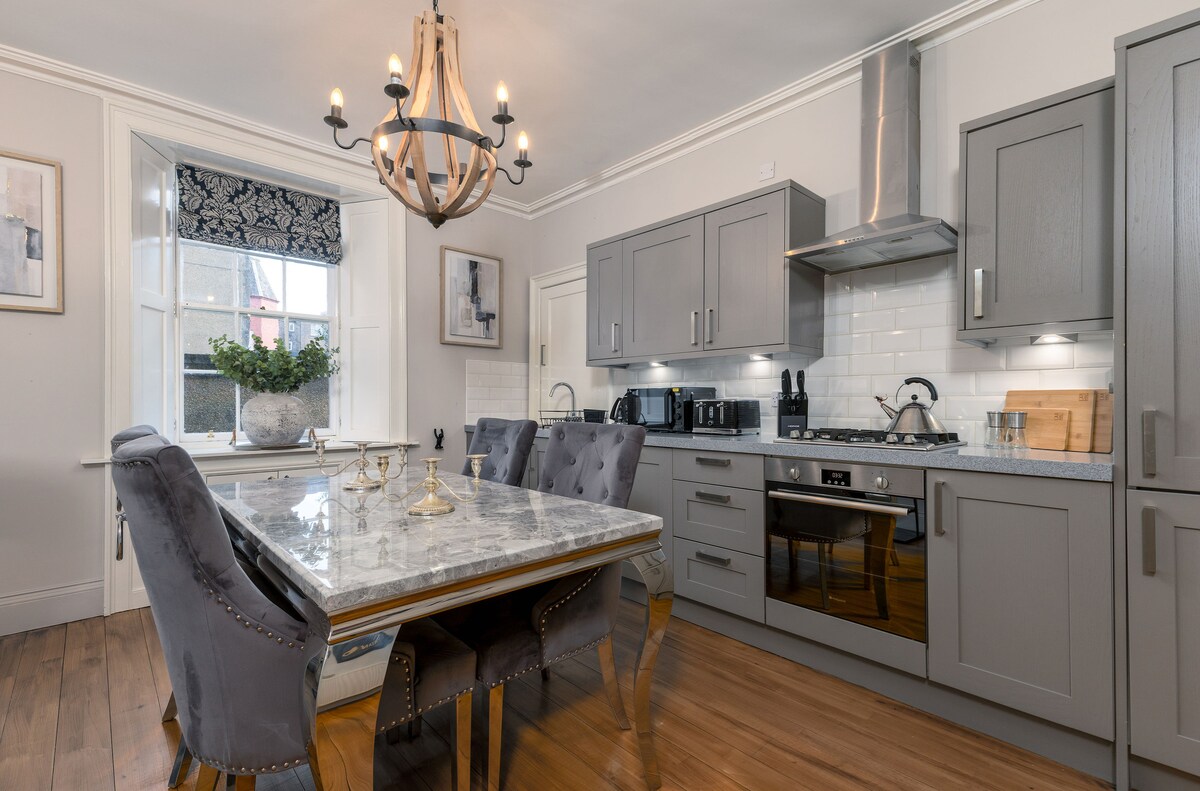 Acest apartament cu 2 dormitoare este frumos convertit fostul Mare Hall al Castelului Dollarbeg. Construit în 1890, Castelul Dollarbeg a fost ultima clădire în stil baronic gotic de acest tip construită vreodată. Frumos restaurat în 2007 la cele mai înalte standarde, a fost transformat în 10 proprietăți de lux, dintre care una este o conversie a originalului „Great Hall”, cu tavanul boltit și priveliștile maiestuoase peste terenurile formale spre dealurile Ochil din depărtare.