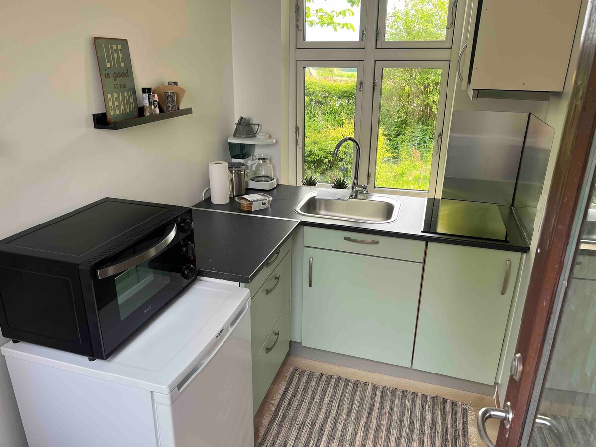 Cazare bună, situată la aproximativ 15 minute de granița daneză/germană. Aproape de Sønderborg (13 km) și Gråsten (5 km). În dormitor există pilote și perne pentru 2 persoane. În bucătărie există frigider, aragaz, cuptor, aparat de cafea și fierbător electric. Locuința are încălzire prin pardoseală. Există o toaletă în locuință și un duș în aer liber cu apă rece și caldă. Există, de asemenea, o baie interioară, care se află lângă minicasă. Puteți folosi curtea din spate.