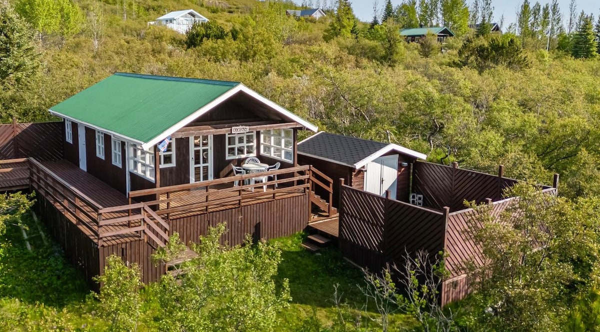 Cabină spațioasă și confortabilă pe Cercul de Aur. Doarme 4 în paturi & 4 pe saltele de podea. Dacă ești în căutarea unui loc bun de cazare în apropierea celor mai mari atracții turistice din sudul Islandei, cum ar fi Geysir, Gullfoss & Þingvellir, acesta este locul potrivit. Dispunem de tot ce cauti, paturi confortabile, living spatios, bucatarie complet utilata, TV cu ecran plat, Apple TV incl. Netflix, WiFi rapid, cadă cu hidromasaj, SAUNĂ, șemineu în aer liber, grătar, încălzire centrală și priveliște uimitoare asupra sudului.