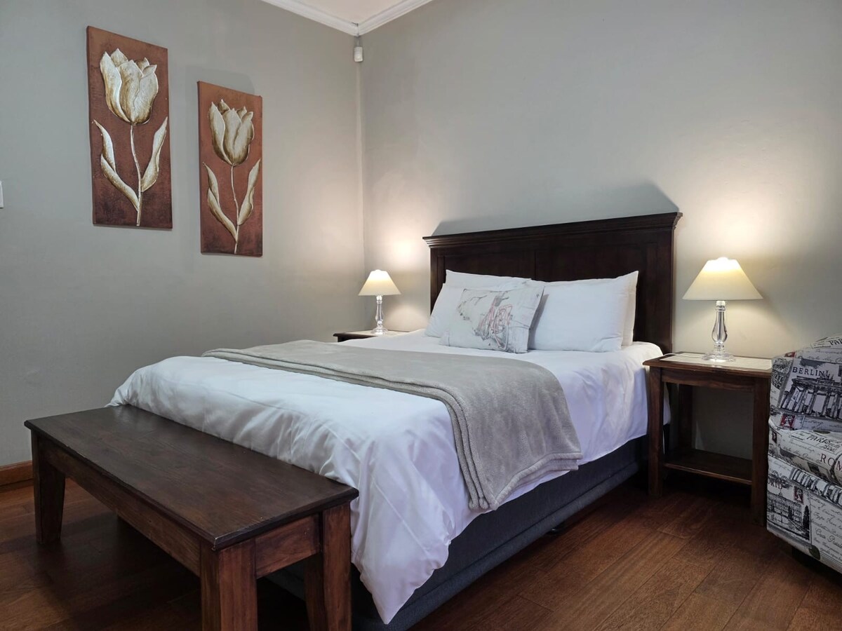 Relaxează-te în această escapadă unică și liniștită. La Sparkle oferim tratament de primă clasă, o locuință departe de casă. Camera noastră frumoasă și spațioasă este obligată să te facă să simți că nu ți-ai părăsit niciodată dormitorul. Dotată cu un pat matrimonial și o baie privată. Grădina noastră frumoasă și liniștită este un loc perfect pentru a surprinde acele amintiri frumoase. Suntem la mai puțin de un kilometru distanță de mall-ul Northridge și de alte dotări frumoase.