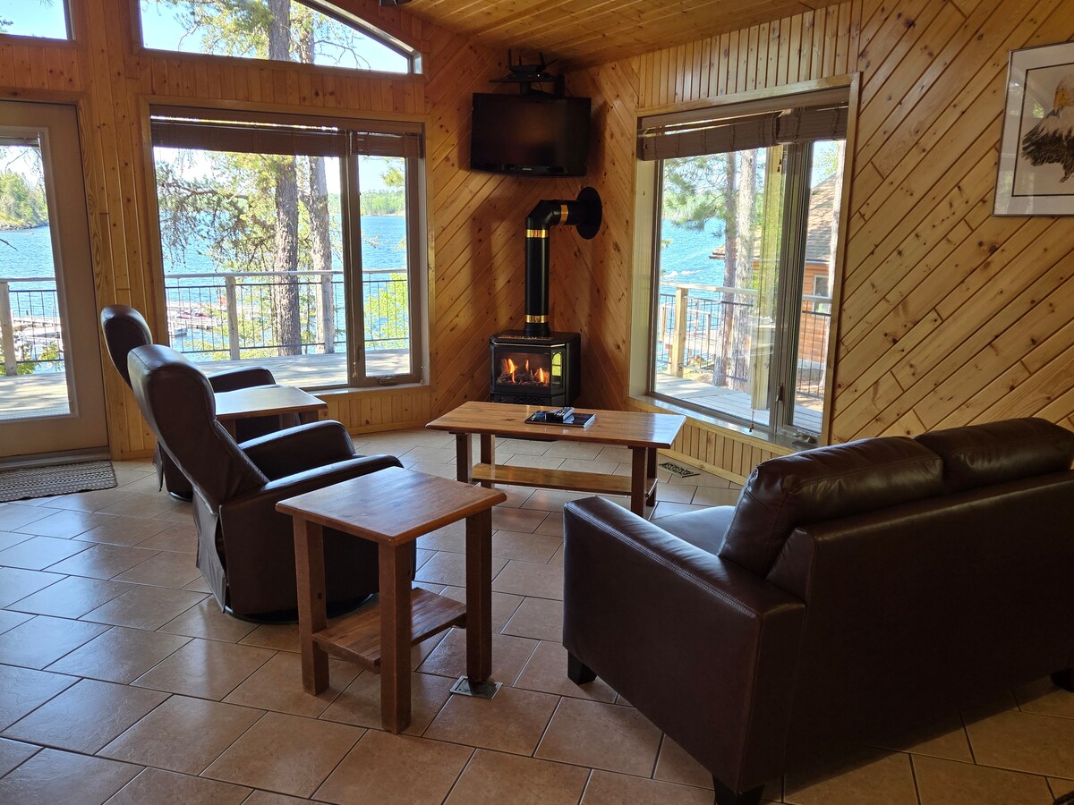 Uită de griji în această cabană confortabilă, pe malul apei, la doar 10 minute de Kenora. Bucură-te de un refugiu privat cu vedere uimitoare la lac, confort modern și acces ușor la dotări. Relaxează-te pe terasa spațioasă cu cafeaua de dimineață sau profită de accesul privat la lac. În interior, bucură-te de o bucătărie bine echipată, Wi-Fi de mare viteză și un spațiu de locuit confortabil. Punctele de atracție în aer liber includ un grătar, o vatră și scaune pentru privitul stelelor. O evadare perfectă dintr-o viață aglomerată!