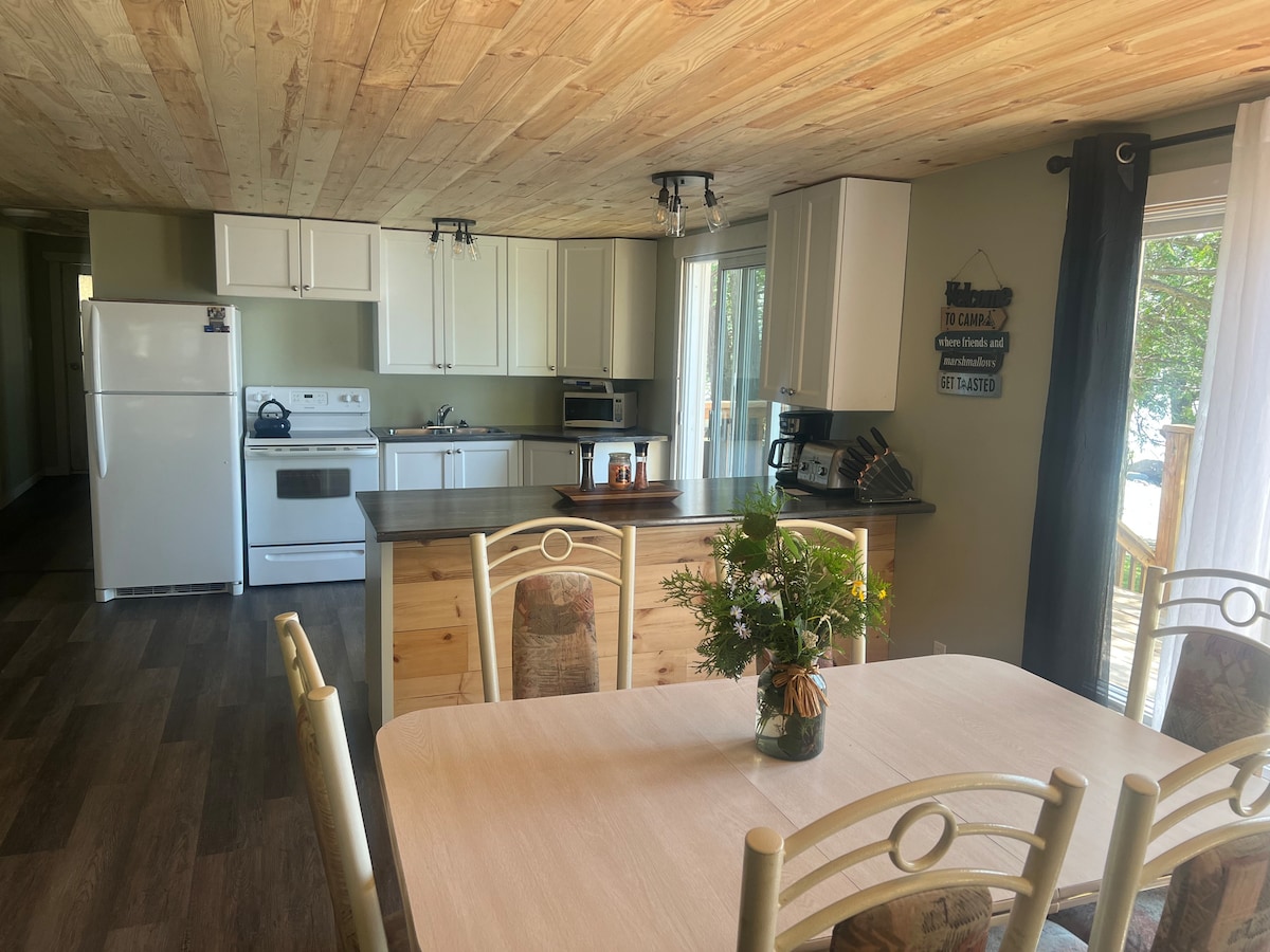 Relaxează-te cu întreaga familie la acest loft liniștit de pe malul apei. Mansardă modernă și actualizată cu 2 dormitoare. Bucură-te de priveliștea frumoasă de pe terasa de la etajul al doilea, unde vei găsi un grătar și o mulțime de locuri. Acest loc este minunat pentru ca o familie să evadeze pentru un weekend sau să aibă o săptămână relaxantă. Suntem echipați cu echipament pentru bebeluși pentru a face lucrurile mai ușoare pentru cei mici. Lacul are acces direct la traseele OFSC. Întreabă despre pachetele de sosire cu snowmobilul. Sau dotări pentru pescuit la gheață.