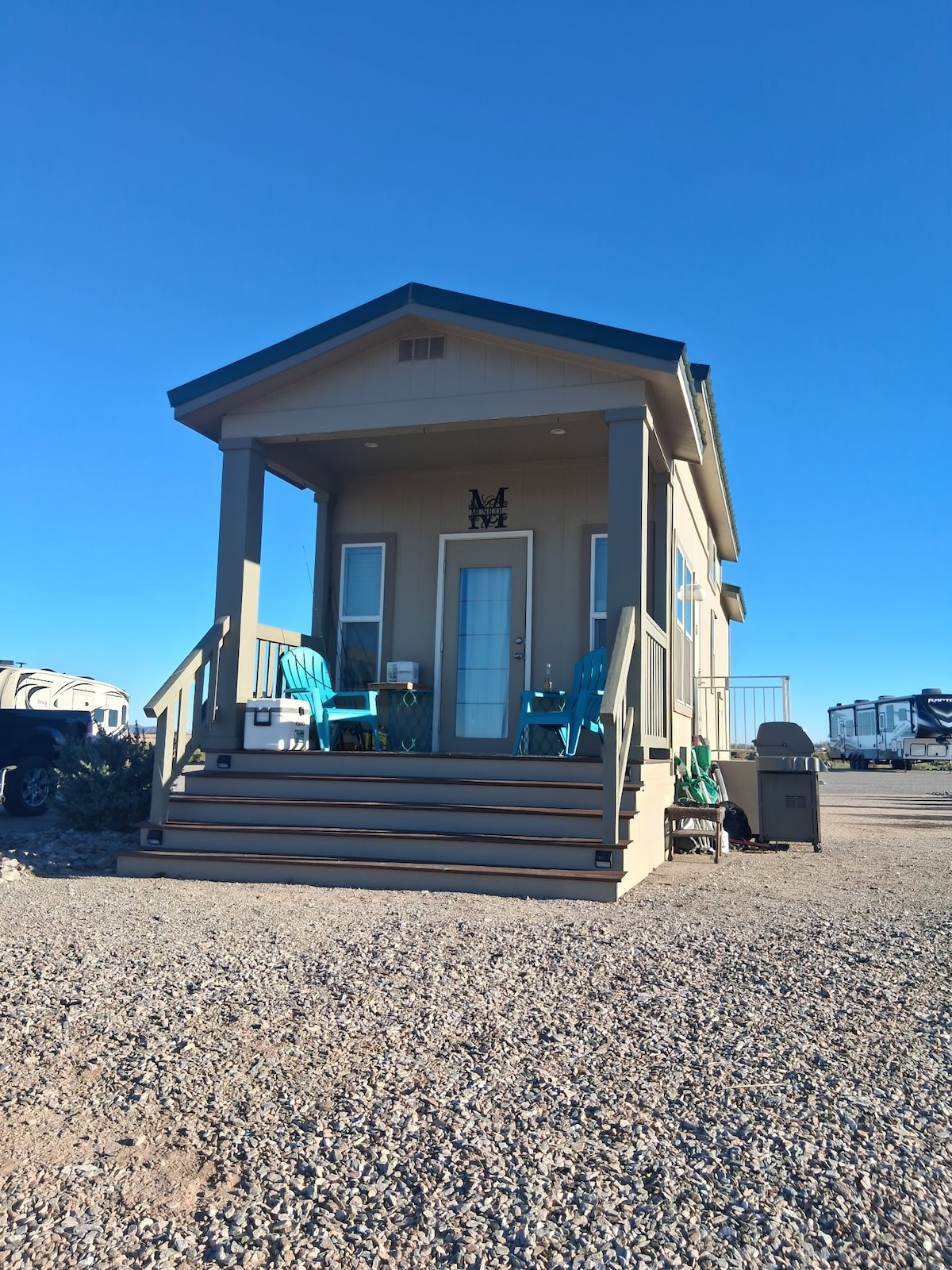 🌊 Desert Dreams at River Sands~private tiny home in a river front resort on the Colorado River. Enjoy private beach access, pool, spa, gym, pickleball & off-road trails. Clubhouse w/ pool table, ping pong, foosball,games, lounge. Sleeps 4–6 with queen bedroom, loft, and futon. Full kitchen, strong A/C, fireplace & 3 TVs. Located on the fishing pond, steps to bathhouse beautiful views. Snowbird-friendly & monthly stays. Veteran/first responder family owned. Discover this secret desert gem 💎