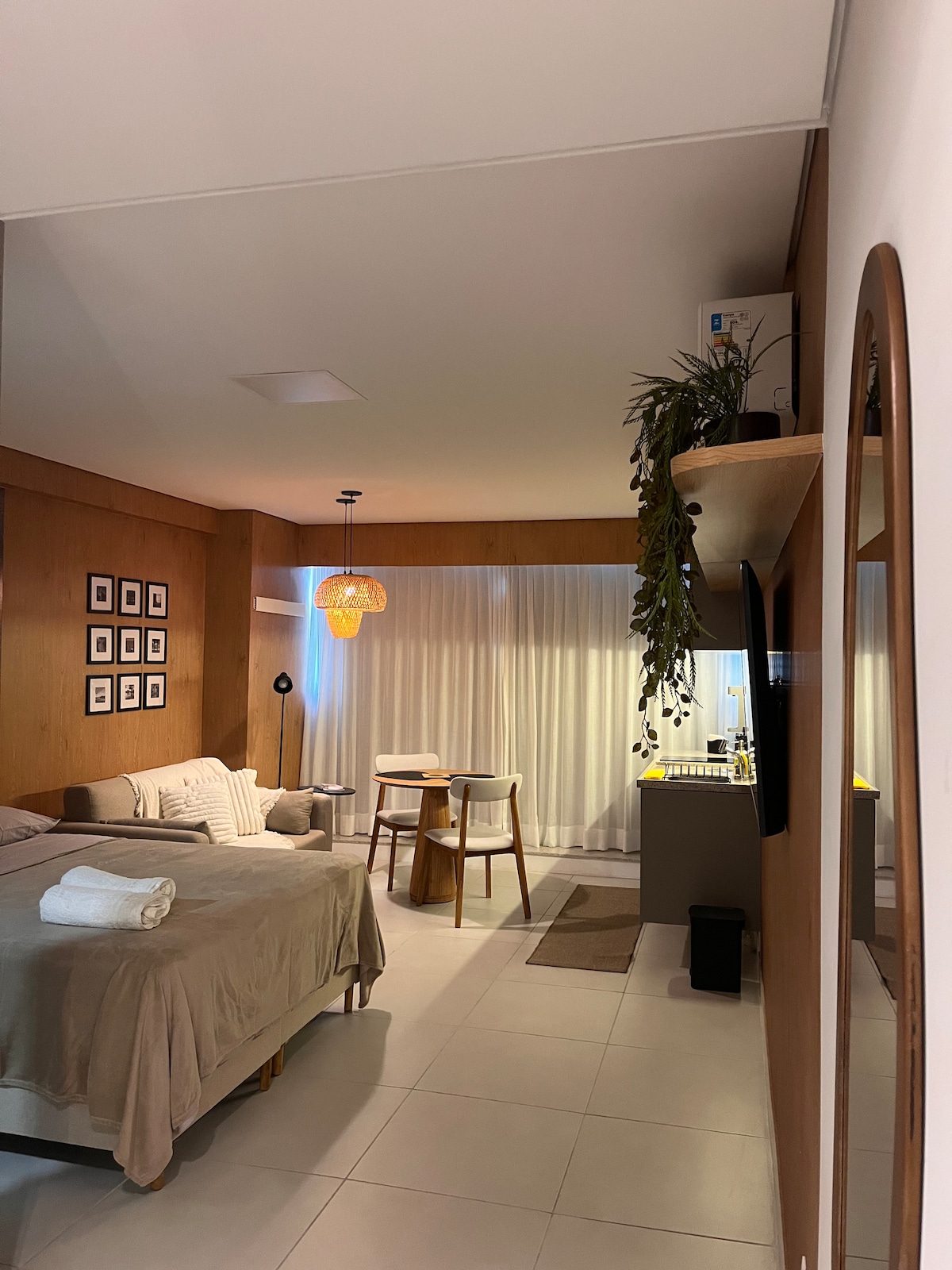 ⭐️⭐️⭐️⭐️⭐️ Bem-vindo ao Seu Lar em Boa Viagem! Excelente Localização, Studio completo, com cama de casal e sofá-cama, ar-cond Split, Smart TV, Wi-Fi, mesa de trabalho e de jantar, cozinha completa com cooktop, micro-ondas e utensílios, armário, espelho, móveis planejados, roupa de cama e banho. Recepção 24h, garagem, piscina, sauna, academia e mercadinho. Localização privilegiada: Shopping Recife (5 min a pé), praia (10 min a pé) e hipermercado em frente. Reserve agora e viva a experiência!