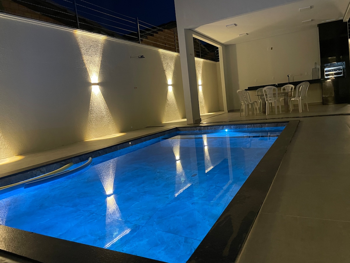 Casa espaçosa e confortável. Com 3 quartos, sendo 2 suites, 3 banheiros, area de lazer com piscina e churrasqueira. Ideal para a família aproveitar as férias ou pra quem vem a trabalho. Estacionamento e wi-fi disponível.