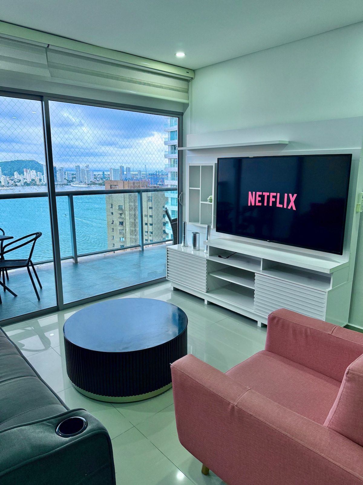 Ești în locul perfect! Acest apartament modern are tot ce îți trebuie; vei fi într-un zgârie-nori modern, în fața ta vei avea marea, plaja și piscina, toate acestea în inima Caraibelor columbiene. De la balcon vei avea vedere panoramică vastă la vechea Cartagena de Indias, la Marea Caraibelor și la apusuri de soare frumoase și colorate. Totul este aproape. Poți ajunge la pereți simțind briza și poți sta într-o cafenea colonială bucurându-te de minunile orașului antic.