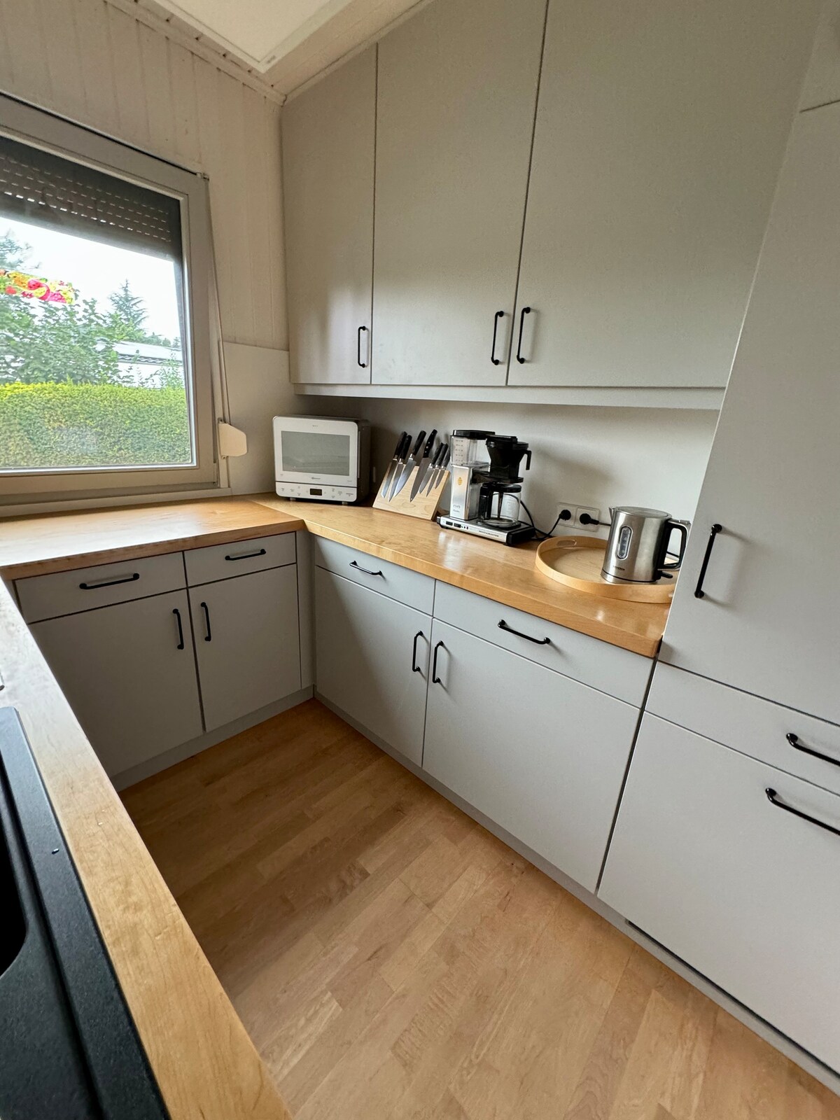 Casă frumoasă, liniștită, cu portbagaj rotund pentru 1 - 2 persoane (nu este potrivită pentru copii sub 10 ani), zonă de dormit ca studio deschis, dulap spațios, bucătărie complet utilată incl. Mașină de spălat vase, șemineu, baie cu duș, mașină de spălat rufe, TV, WiFi, terasă mare, parțial acoperită, grădină mare, carport acoperit, cameră cu încuietoare pentru biciclete (cu încărcare pentru biciclete electrice)