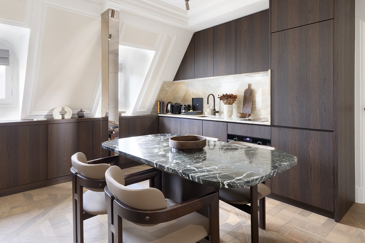 Perched on a high floor with an elevator, this designer-renovated studio is in a vibrant area with restaurants, bakeries, and shops. It features a queen-size bed and a comfy sofa, both facing stunning Eiffel Tower views. The kitchen is fully equipped, and the dining table offers a breathtaking view while doubling as a workspace with high-speed broadband. Enjoy an Italian shower, a washer-dryer combo, and a private balcony with a coffee table to soak in the view.