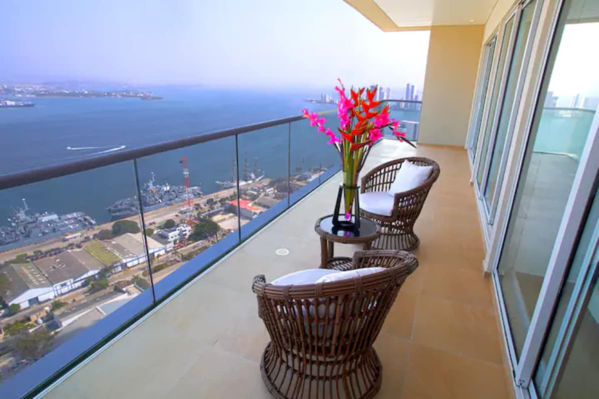 Acest penthouse modern de 260 de metri pătrați are terase spațioase pe ambele niveluri, un jacuzzi privat pe balconul de la etaj și o cadă interioară privată în apartamentul principal. Echipată cu un sistem de sunet ambiental Wi-Fi în trei zone, aer condiționat central și televizoare mari, această locuință oferă confort maxim. Cu finisaje de lux și cea mai bună vedere directă la ocean din tot Cartagena, poziția sa strategică te plasează aproape de tot!