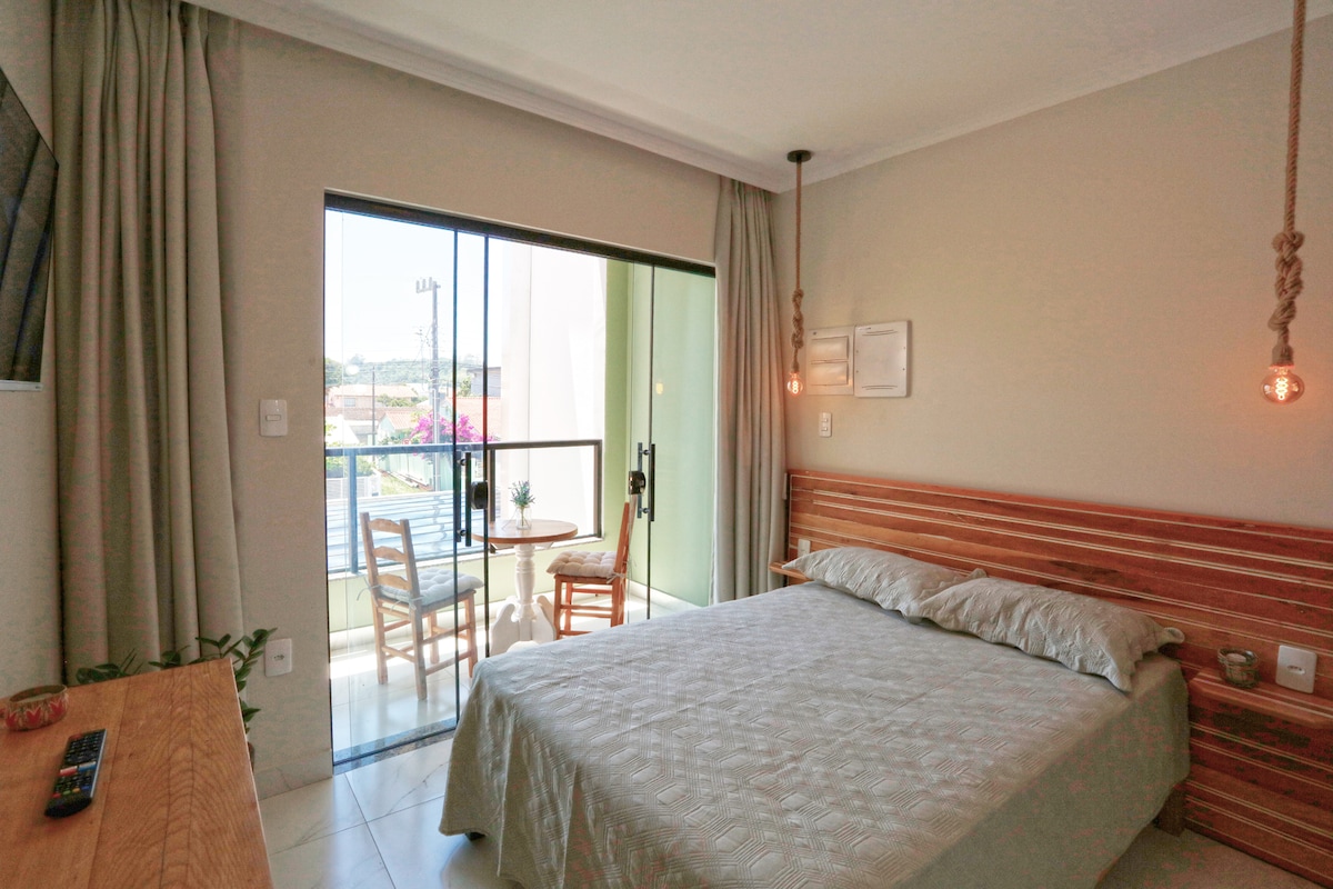Charming Loft este un spațiu confortabil pregătit pentru a găzdui până la două persoane. Acesta este decorat cu inspirație din aspecte ale culturii locale, căutând să ofere confort într-un spațiu armonios și primitor, care îți prețuiește zilele de călătorie în vacanță sau pentru alte activități. Este aproape de cele 4 insule și plaja Bombinhas și are acces facil la toate celelalte plaje din municipalitate. Este aproape de magazine și restaurante. Îți place? Adaugă la lista ta de dorințe dând clic ❤ pe colțul din dreapta sus.