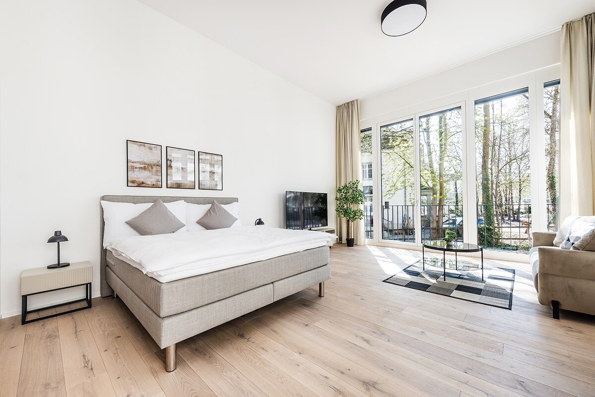 Apartament cu un dormitor dublu cu vedere la frumoasa mare. Apartamentul are propria bucătărie cu toate ustensilele de gătit necesare. În living există o canapea extensibilă mare pentru două persoane. Studioul modern este completat de o zonă mare de relaxare orientată spre sud și un balcon privat cu vedere la lac. Apartamentul este situat în linişte şi oferă o mulţime de intimitate.