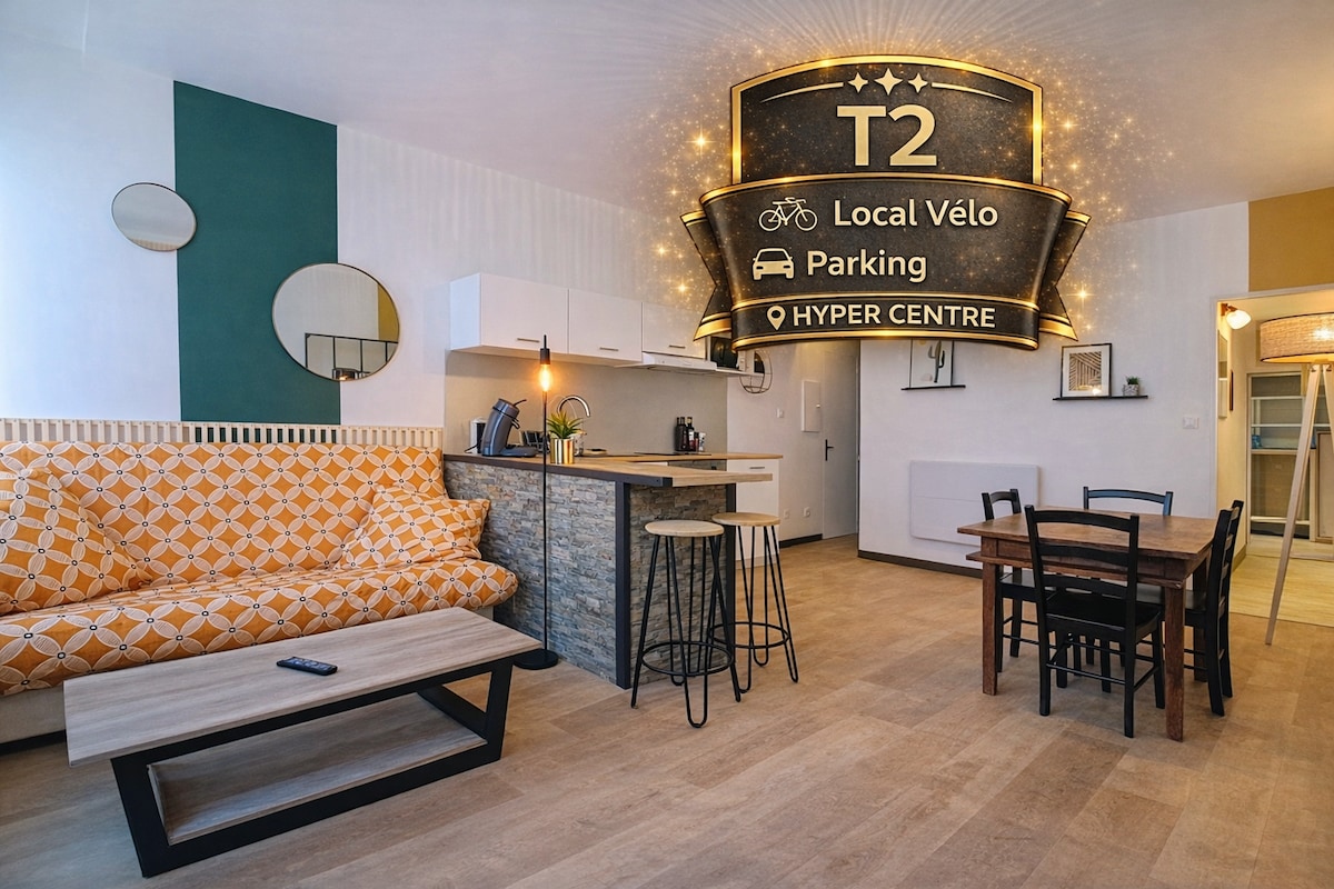 Bienvenue dans ce chaleureux T2 idéalement situé en hyper centre d’Agen, parfait pour un séjour en famille, entre amis ou professionnel. Vous profiterez d’un emplacement privilégié à deux pas de la gare, des restaurants et commerces, tout en étant dans un environnement calme et agréable. ✨ POINTS FORTS ✔️ 1 vraie chambre confortable ✔️ Jusqu’à 4 voyageurs ✔️ Emplacement hyper central ✔️ Arrivée autonome (flexible) ✔️ Parking à proximité