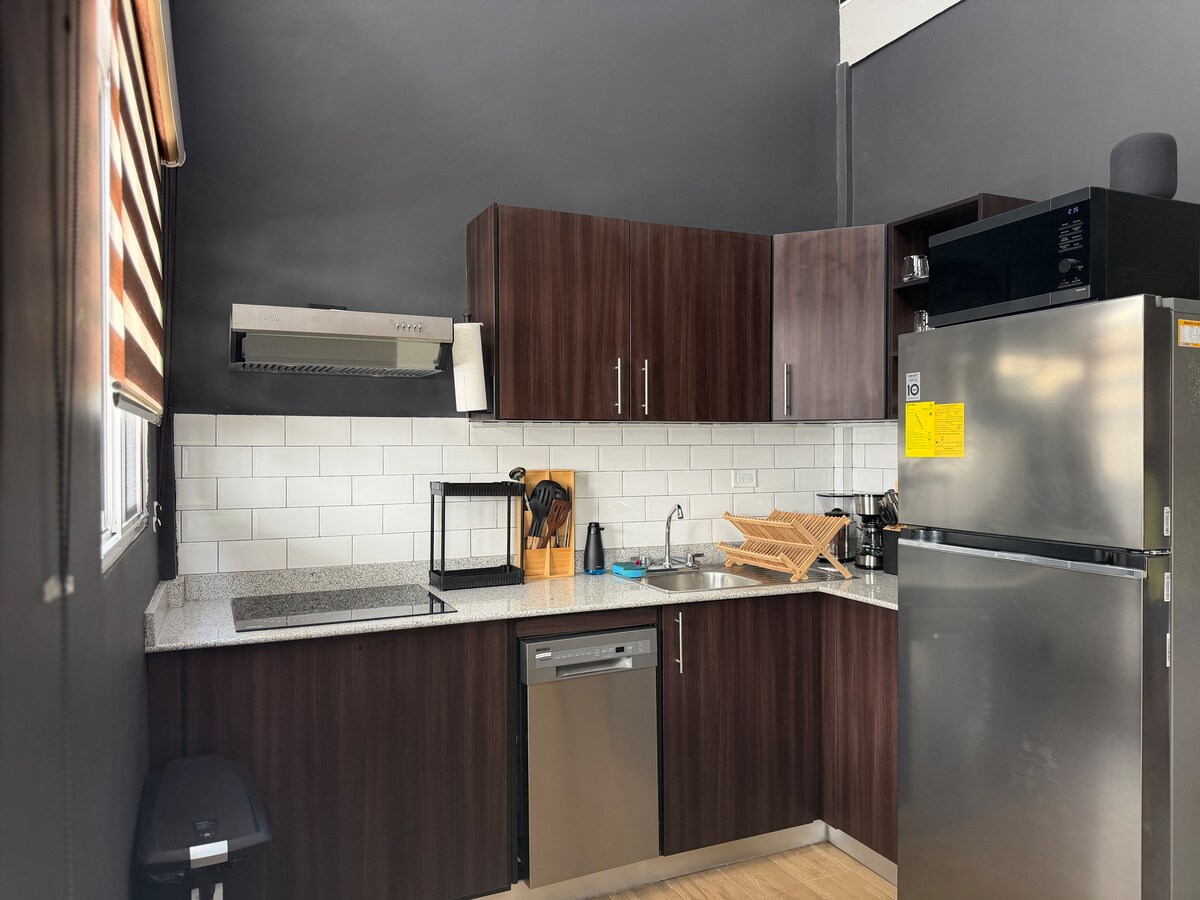 Modern loft in Bajo Boquete, located in a quiet area, walking distance to town center, Rey supermarket and Biblioteca park. Bright and stylish, it features an open layout, a private garden, a full kitchen, and dedicated parking beside the unit—ideal for couples or solo travelers seeking comfort and a relaxed mountain atmosphere. This property offers two sleeping areas on different levels: an upstairs loft-style space with a queen bed and a secondary sleeping area in the living room (sofa bed).