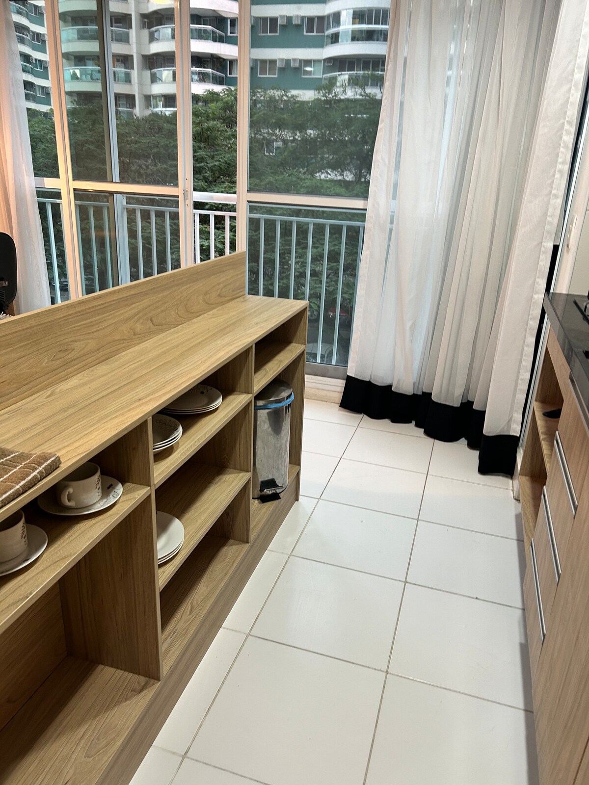 Apartament cu facilități în stil hotelier, cu living, balcon, chicinetă cu minibar și cuptor cu microunde (fără aragaz), TV (nu inteligent) și aer condiționat atât în living, cât și în dormitor. Situată la Convenția Samba Rio, clădirea oferă o piscină, saună, sală de gimnastică, restaurant, facilități de spălătorie, mini-market, recepție deschisă nonstop și parcare. Convenabil de aproape de Riocentro.