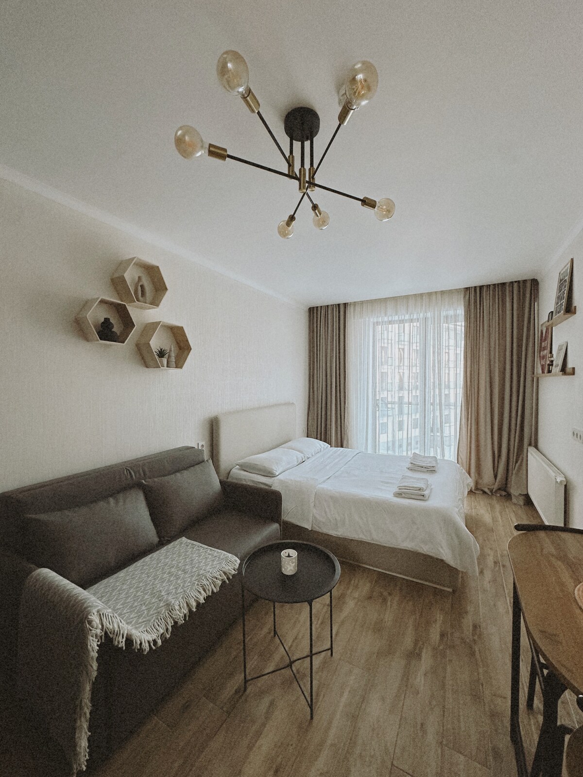 Apartament cu 1 dormitor, balcon și șemineu