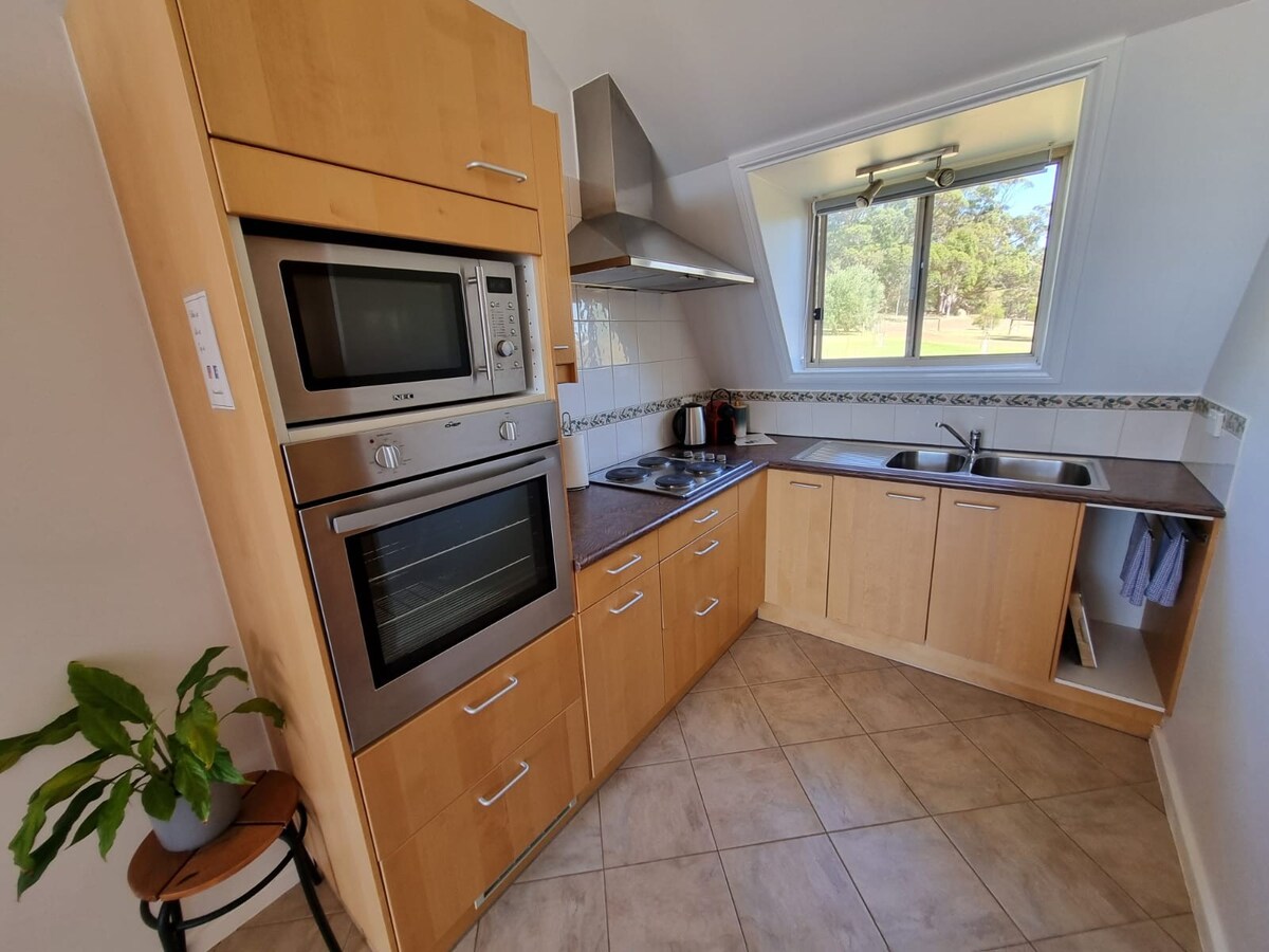 Frumos finisat, imaculat de curat, complet echipat, cazare autonomă din cărămidă de lut, cu intrare proprie, chicinetă/sufragerie/lounge în plan deschis, șemineu din lemn decorat/încălzitoare electrice sau ventilatoare, 2 dormitoare minunate cu paturi matrimoniale foarte confortabile și lenjerie de pat de bună calitate. Canapea extensibilă disponibilă. Situat într-o zonă rezidențială liniștită, cu o atmosferă de țară, pe 1,5 acri, cu vedere la grădina spațioasă comună, cu vedere la oile de companie. 2 km de Denmark Town și central pentru diverse atracții turistice accesibile cu mașina.