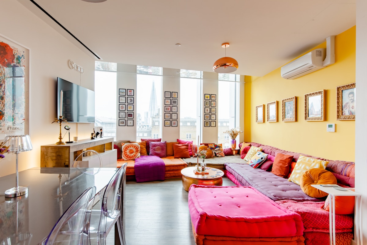 Bine ați venit în apartamentul nostru penthouse duplex fermecător cu două dormitoare, situat convenabil la doar câteva momente distanță de emblematicul Shard și London Bridge. Vei avea plăcerea de a explora Borough Market, renumit pentru ofertele sale incredibile de mâncare stradală, toate la doar câteva minute de mers pe jos de ușa ta. Scufundă-te în cultura locală și delicii culinare, Descoperă combinația perfectă de confort și accesibilitate de lângă Podul Londrei, creând momente memorabile pentru șederea ta în oraș.