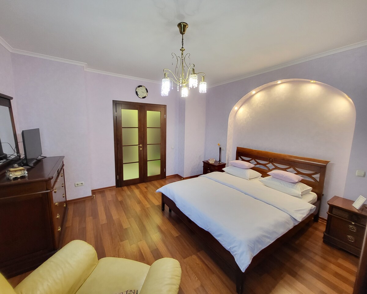Apartament cu un dormitor la etajul 13 al unui zgârie-nori cu 34 de etaje. Priveliștea este frumoasă. Apartamentul a fost renovat. Este instalat un nou pat dublu cu o nouă saltea confortabilă. Bucătărie complet echipată cu frigider, cuptor cu microunde. Bucătăria are o canapea pentru relaxare, TV, iluminare plăcută. Pentru confortul tău: dulapuri, dulap. Există o loggie mare. Apartamentul este curat, cald și confortabil.